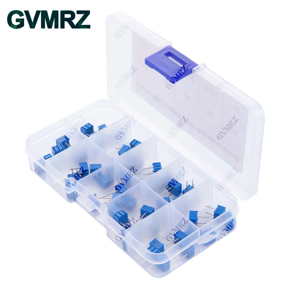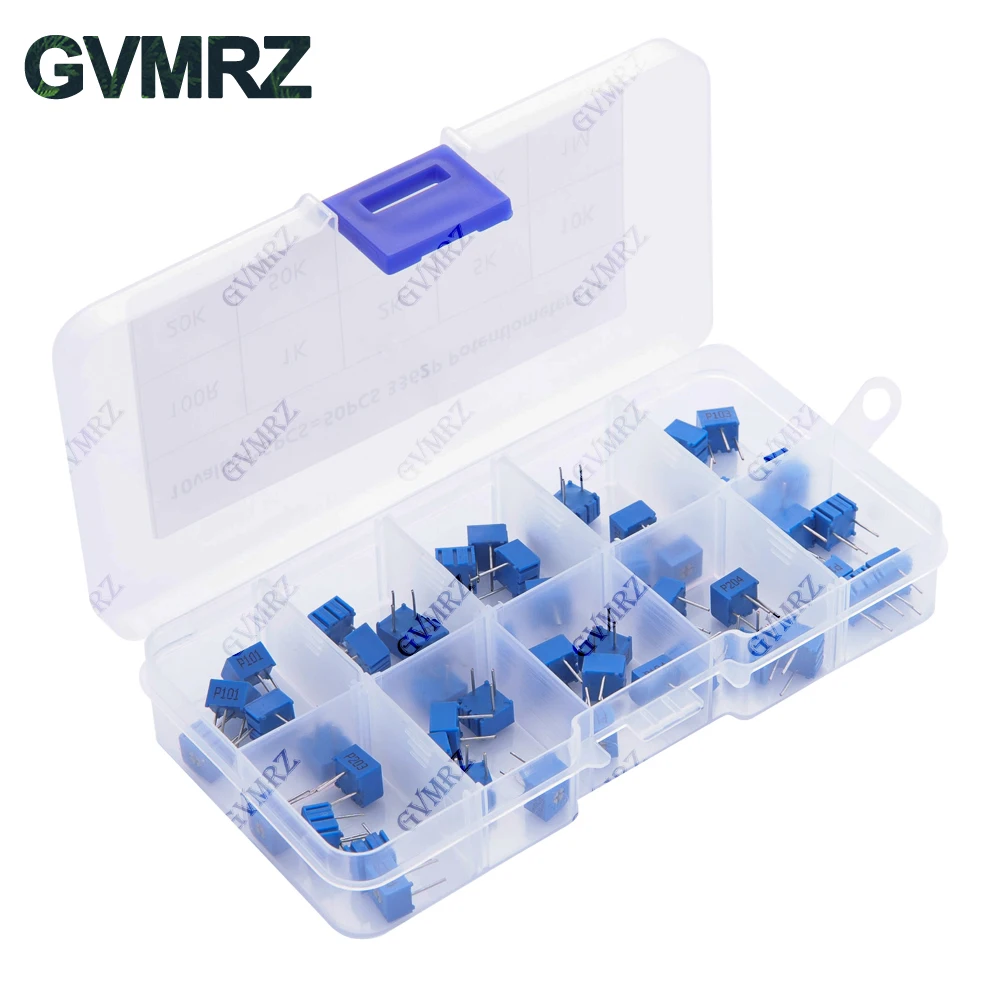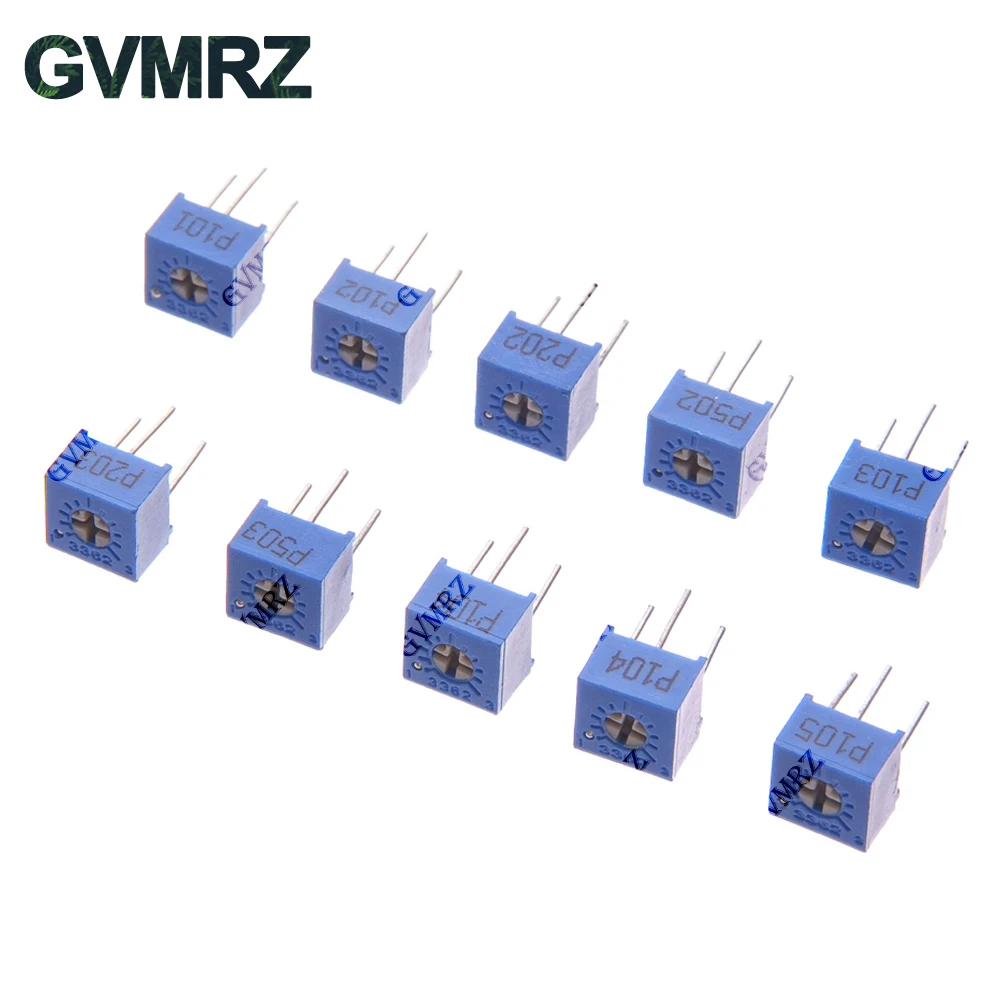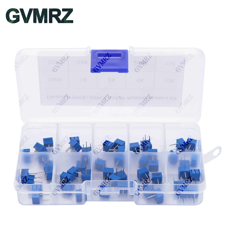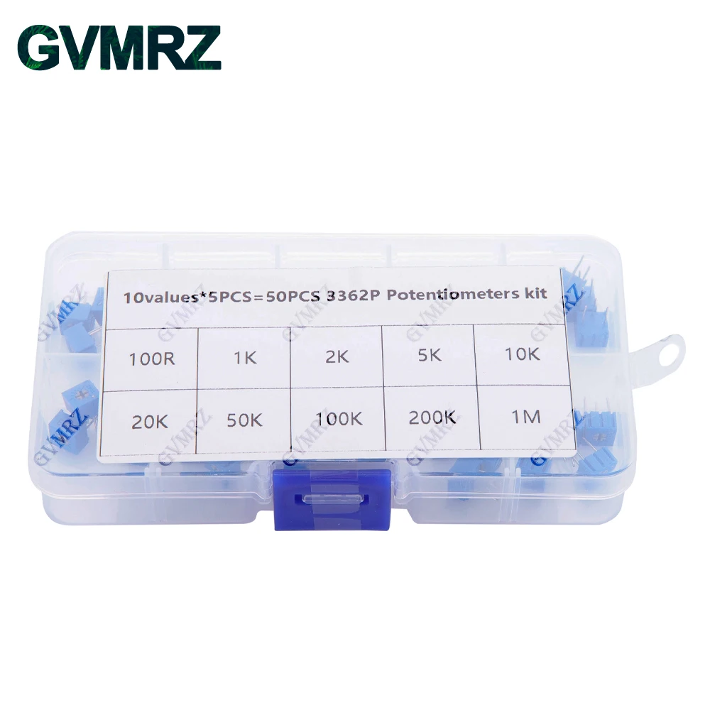 50PCS 3362P Multiturn Trimmer Potentiometer Kit 1K 2K 5K 10K 20K 50K 100K 200K 1M High Precision 3362 Variable Resistor Set