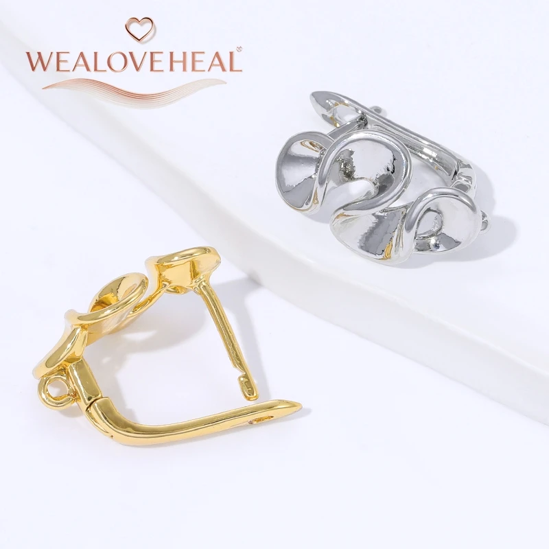 18K Gold Plated Brass Metal Pleated Flowers Leverback Earwire,High Quality Earring Hook Clasps for DIY Earring Making Materials