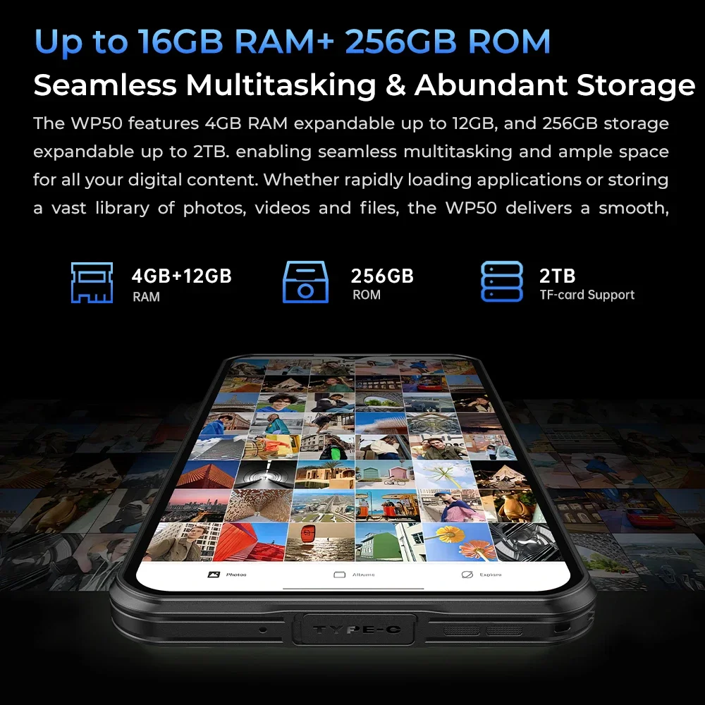 aliexpress , ali , shop , ali shop , online , store , online shop , online store , buy , sell , Global version Oukitel WP50 Rugged Phone 6.60" HD+ MediaTek Dimensity 6100+ Octa-core Smartphone 5G 4GB+256GB 6500mAh Android 14