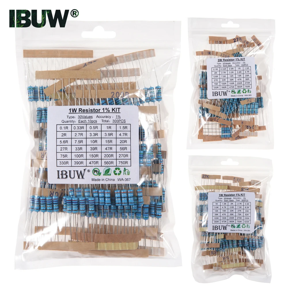 1/4W 1/2W 1W 2W 3W Resistance Set 1% Metal Film Resistor Assortment Kit 1K~820K 0.1R~750R 10K