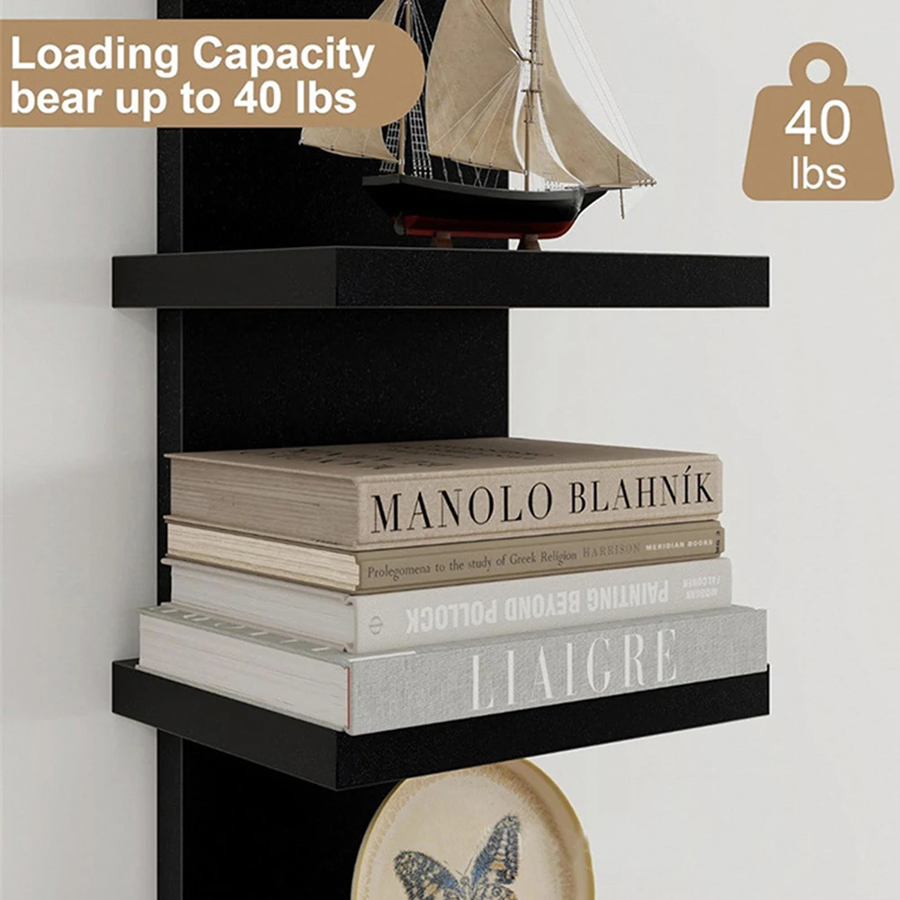 5 Tier Wall-Mounted Bookshelf PVC Floating Storage Rack Smooth-Pressboard Vertical Display Shelf for Living Room Bedroom Decor