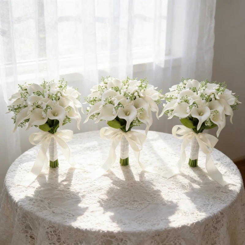 White Artificial Calla Lily Flower Bouquet For Wedding Photography Prop Bridal Wedding Bouquet Party Ceremony Anniversary Flora