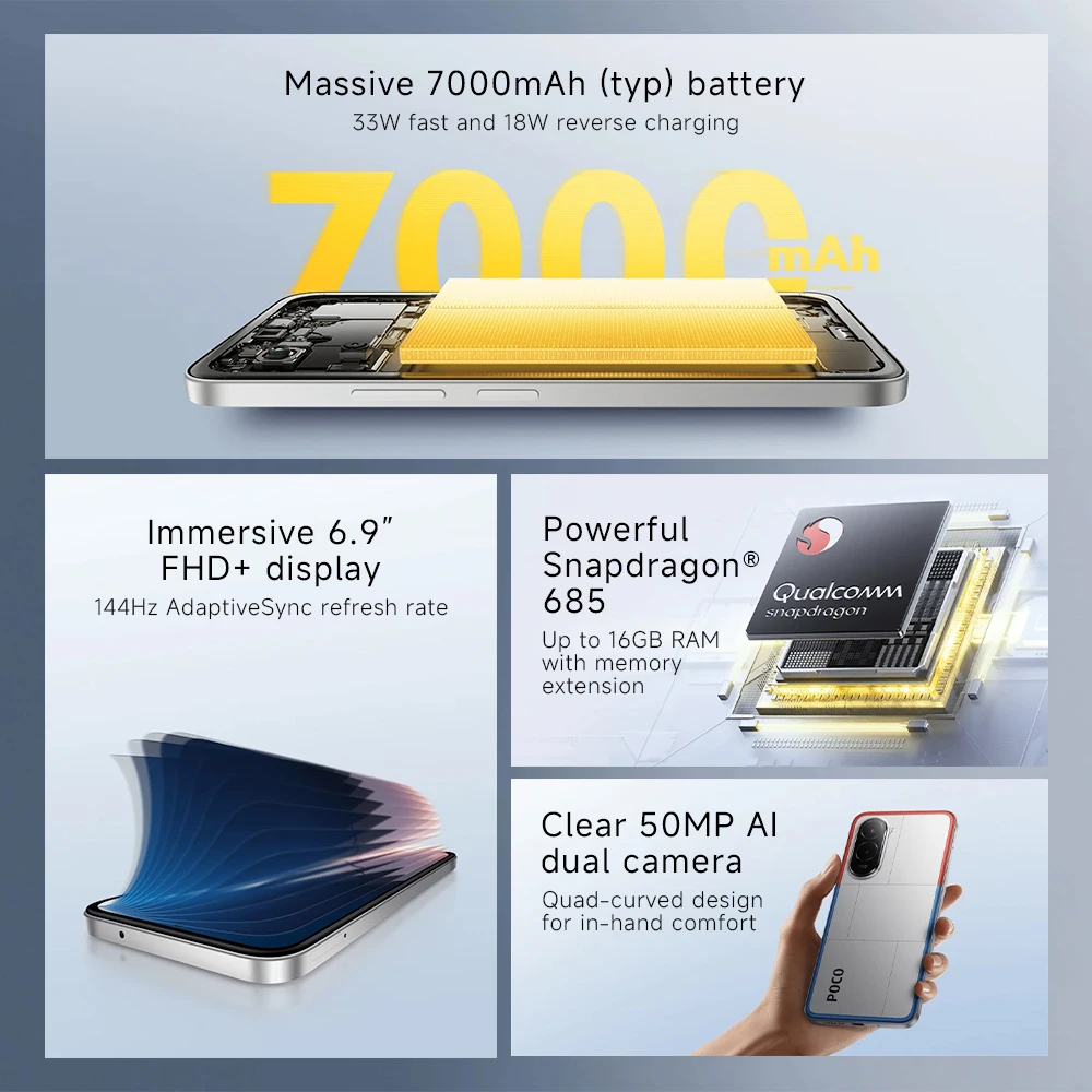 aliexpress , ali , shop , ali shop , online , store , online shop , online store , buy , sell , Original POCO M7 Global Version Smartphone Snapdragon 685 6.9" 144Hz FHD+ DotDisplay 50MP 7000mAh 33W Fast Charging NFC