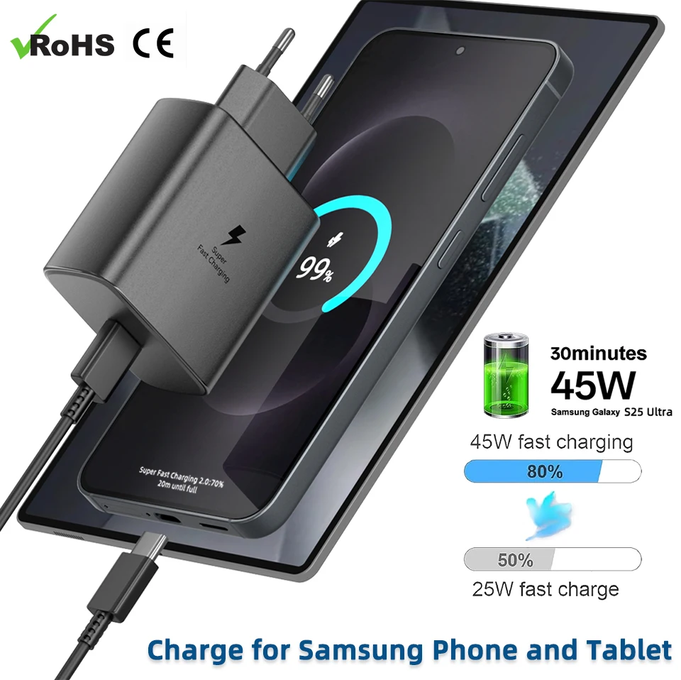 Original SAMSUNG 45W Charger Type C Adapter 25W Super Fast Charging Cord Galaxy S26 S25 FE S24 Ultra S23 + S22 A56 A36 M56 Tab