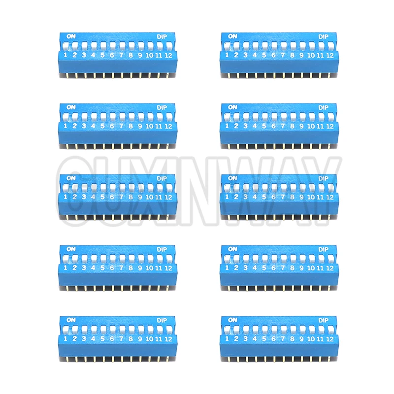 10PCS Slide Type Switch Module 1 ~ 12 Bit 2.54mm Position Way DIP Blue Pitch Toggle Switch Blue Snap Switch For PCB 8PIN 6PIN
