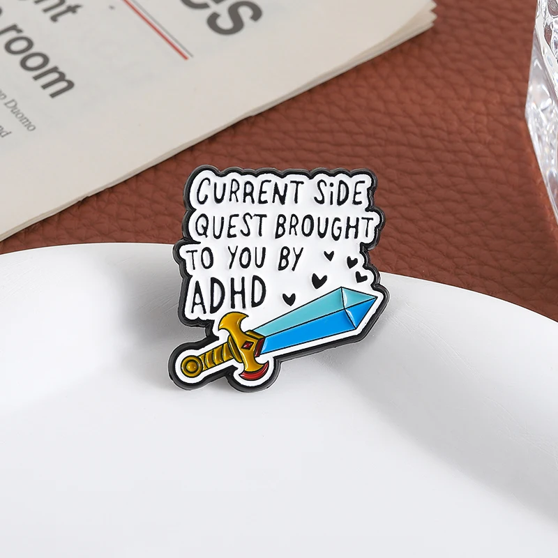aliexpress , ali , shop , ali shop , online , store , online shop , online store , buy , sell , Sword Exploration Adventure Enamel Pins Custom QUEST BROUGHT TO YOU BY ADHD Brooches Lapel Badges Jewelry Gift for Kids Friends