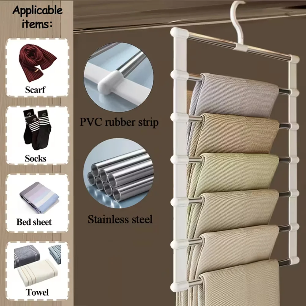 Foldable Multi-Tier Trouser Rack Wardrobe Storage Organizer Space Saving Hanger for Home Bedroom Closet and Retail Display