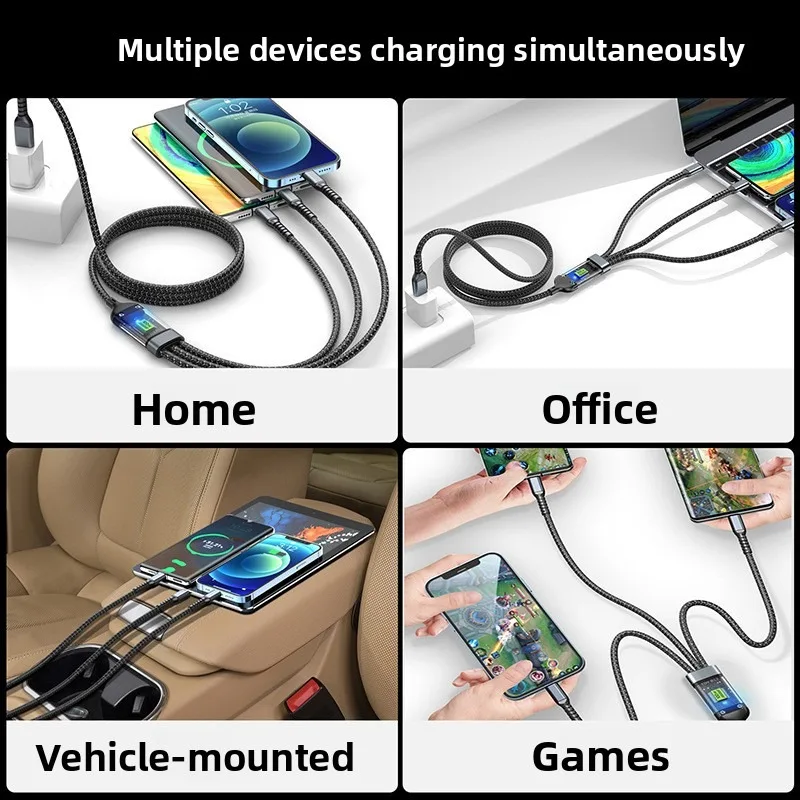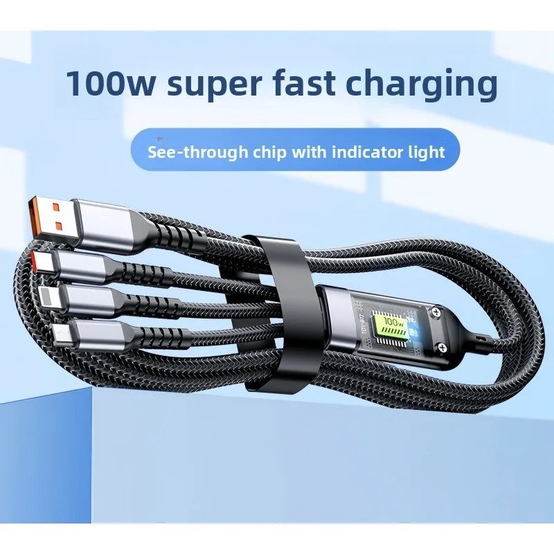 3-in-1 USB 100W Fast Charger Cable Car USB To Type-C Micro Lighting Cable for Huawei, Apple, Android Data Cable