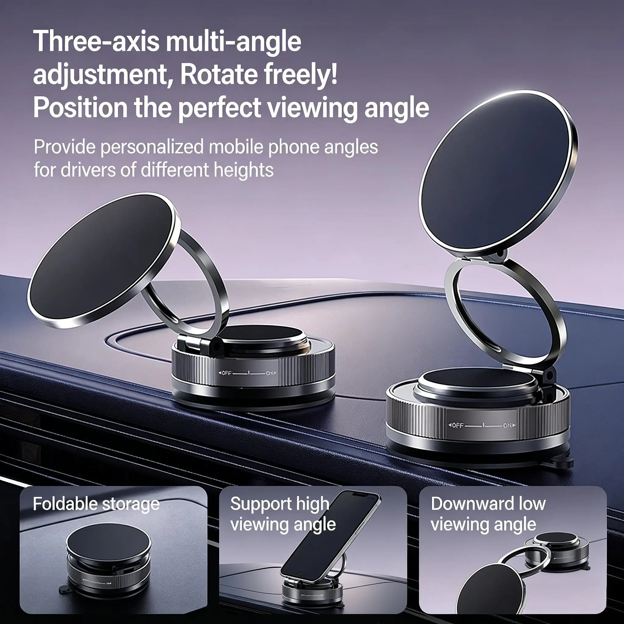 CarPhone Foldable Strong Magnetic Stand Mechanical Vacuum Suction Cup Rotate 360° Magnetic Adsorption Bracket Navigation Holder