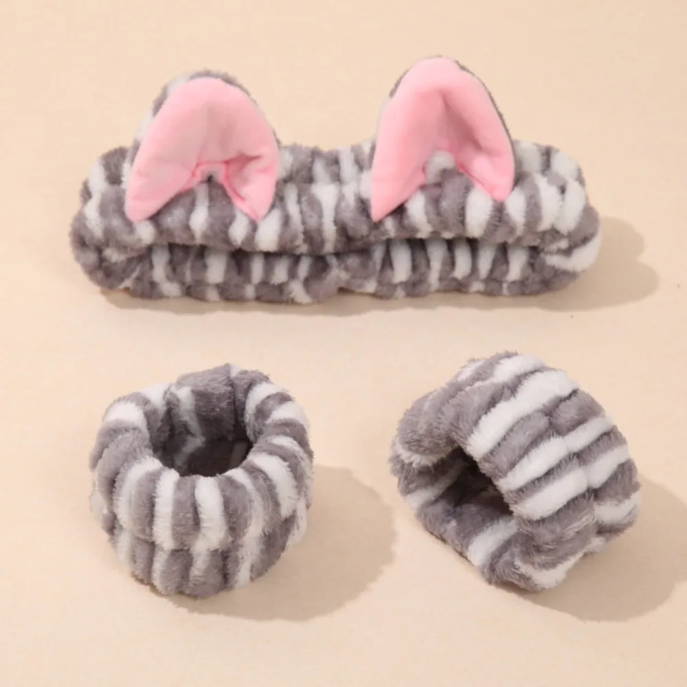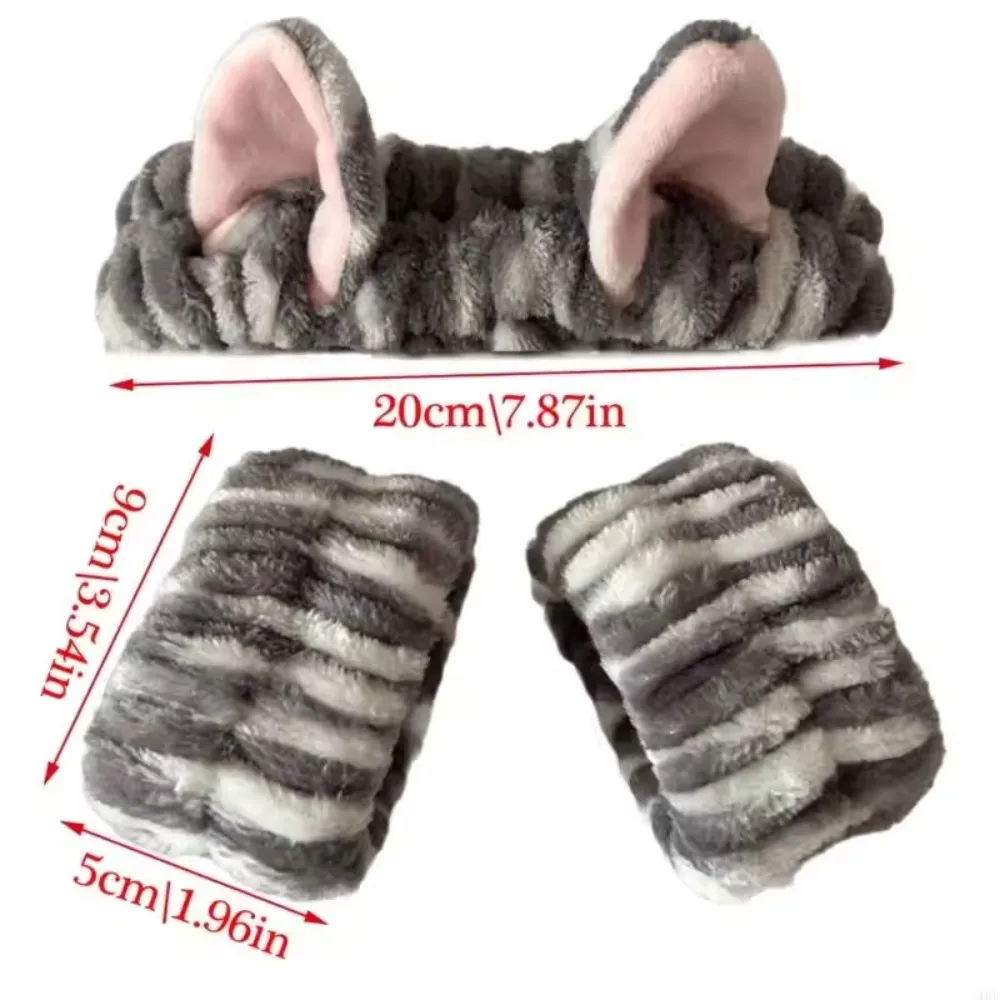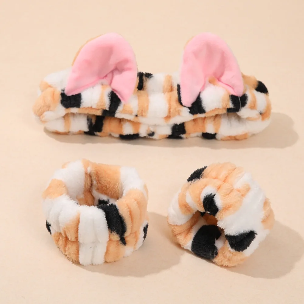 Hair Band Cat Ear Elastic Headband Wrist Strap Leopard Print Plush Women Girls Spa Makeup Wash Face Headband Hair Accessories