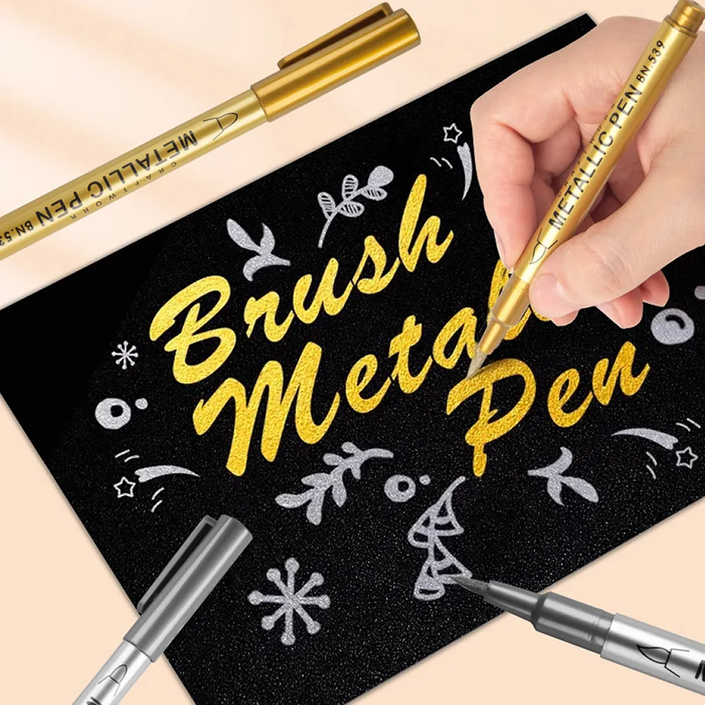 20pcs Soft Brush Metallic Marker Pens Gold Silver Permanent Art Markers For Glass Ceramics Resin Crafts Scrapbooking Painting