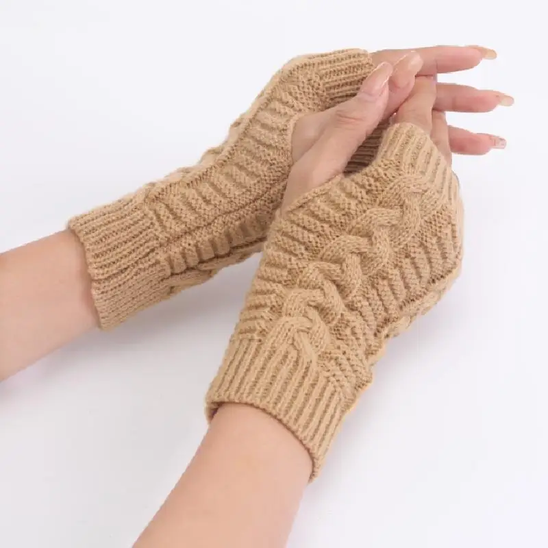 Women Stylish Hand Warmer Winter Gloves Arm Crochet Knitting Faux Wool Mitten Warm Fingerless Glove Twist Pattern Women Gloves
