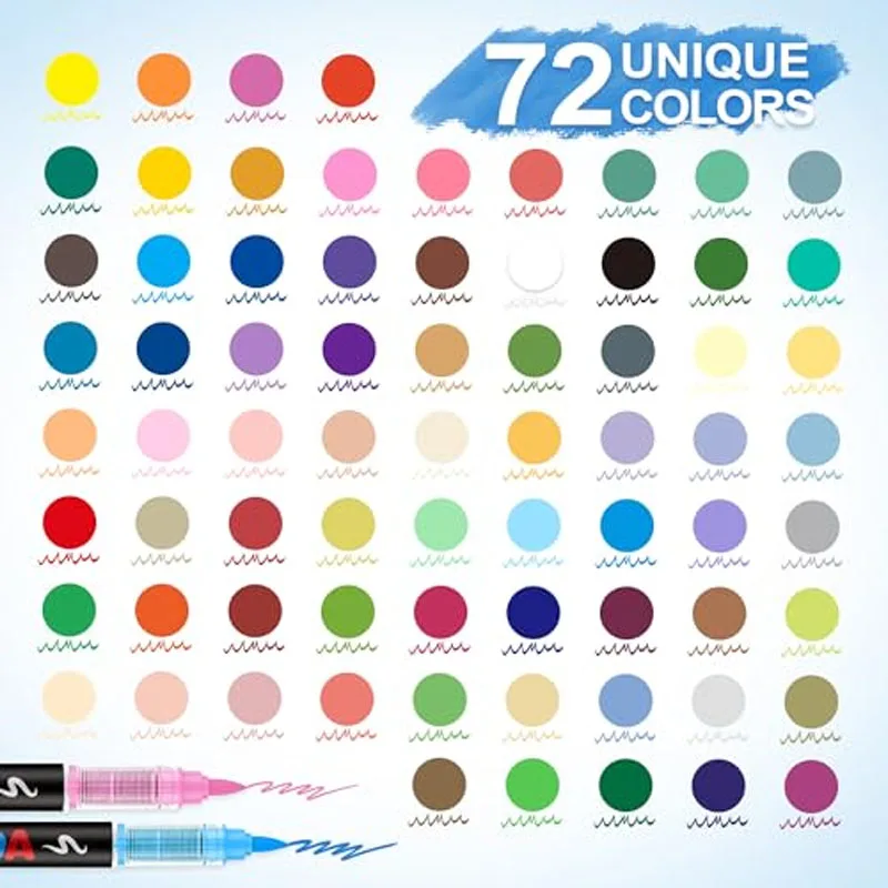 72 Colors Acrylic Paint Markers Soft Brush Tip Acrylic Markers Set Paint Pens for Wood Fabric Canvas Glass Canvas Rock Painting