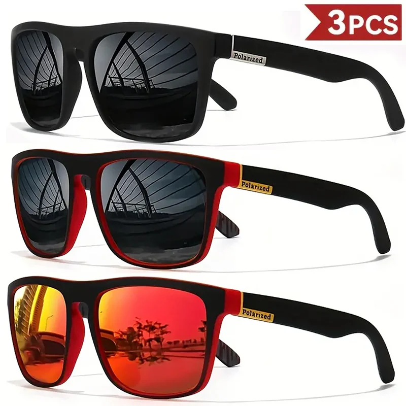 1/3/4PCS Men Classical Square Sports Sunglasses Lightweight PC Frame UV400 for Driving Fishing Cycling Uni Durability