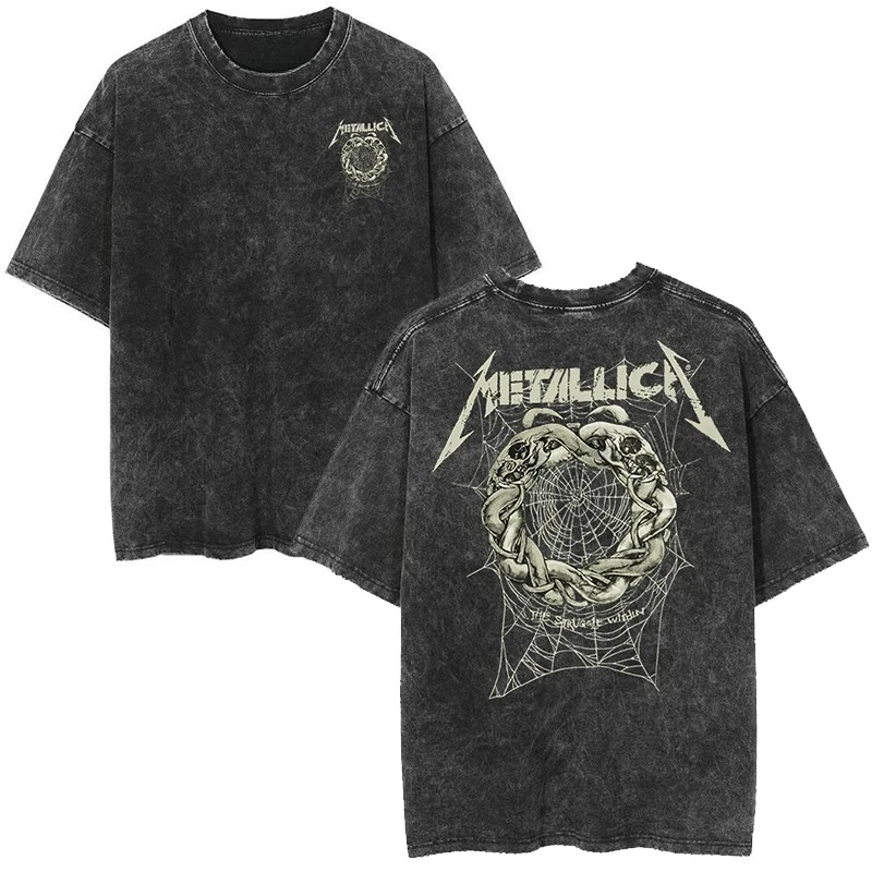 Metallica Rock Band's Vintage Washed Short Sleeved Round Neck Y2k Tshirt Men Clothing New in Top & Tees Mens T-Shirt Camisetas