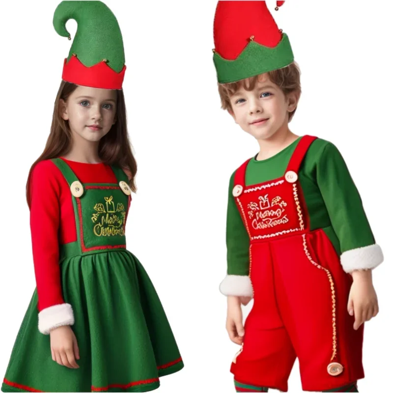 Festive Christmas Elf Family Costume 4-Piece Set With Elf Ears Wig Set Lightweight Comfortable For Boy Girl Halloween Role Play