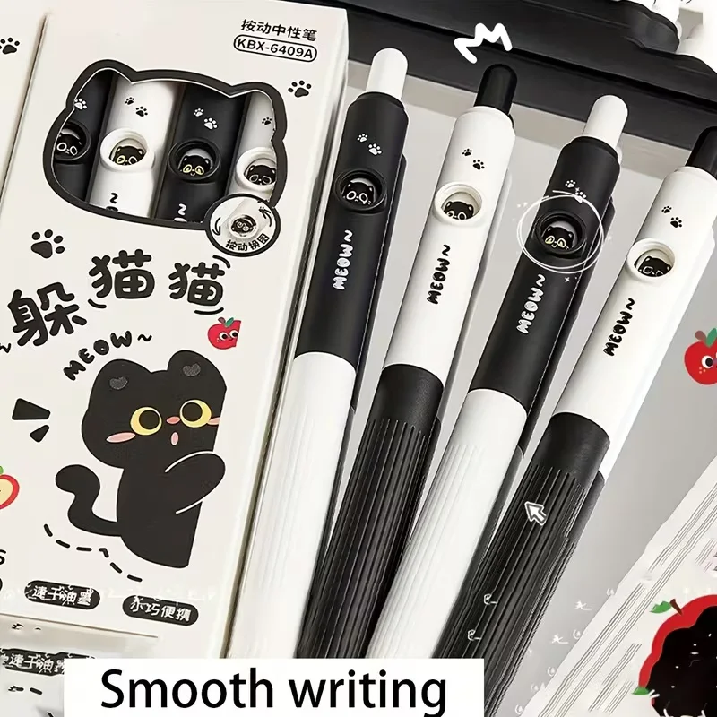4pcs Kawaii Cat Pens Paw 0.5mm Quick-Dry Black Ink-Smooth Writing Retractable Pens School Journaling Birthday Christmas Gift