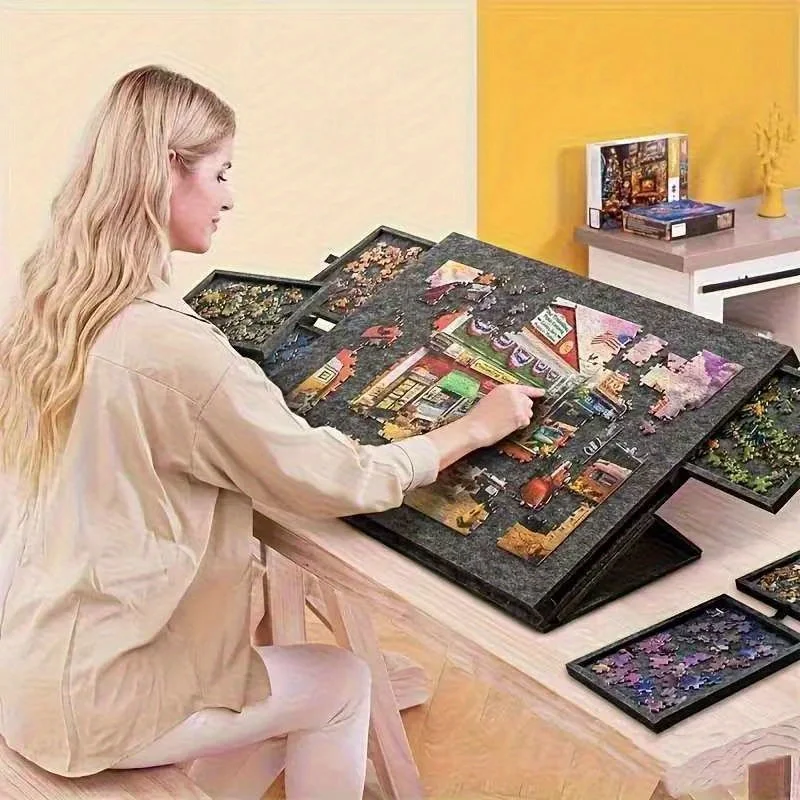 1 Set 6-in-1 Decorative Puzzle Board - Tiltable Puzzle Desk with 6 Drawers, Holds 1000pcs for Home Decor & Educational Storage