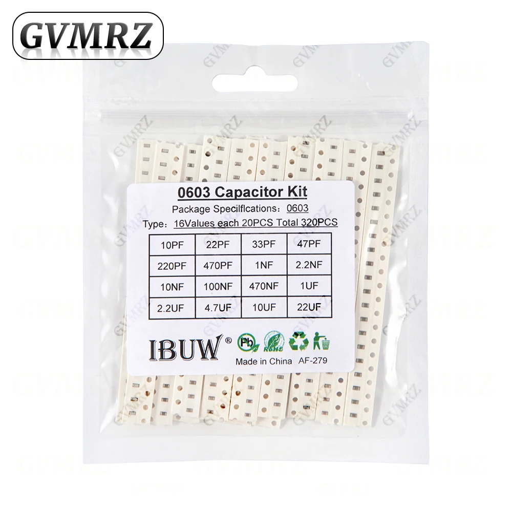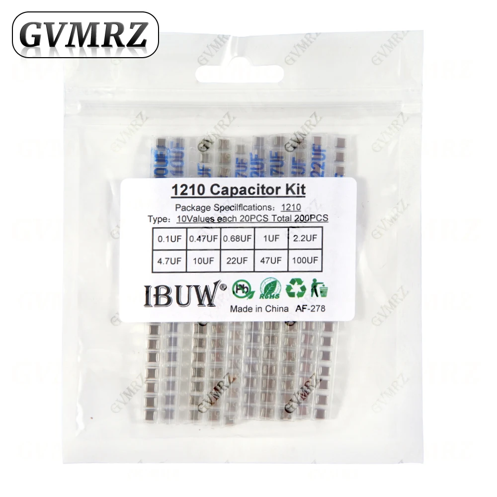0603 0402 0805 1206 SMD Ceramic Capacitor Assorted Kit 1pF - 10uF 100PF 10NF 100NF 0.47UF 1UF Chip Capacitance Set 10uF 8uF 7uF