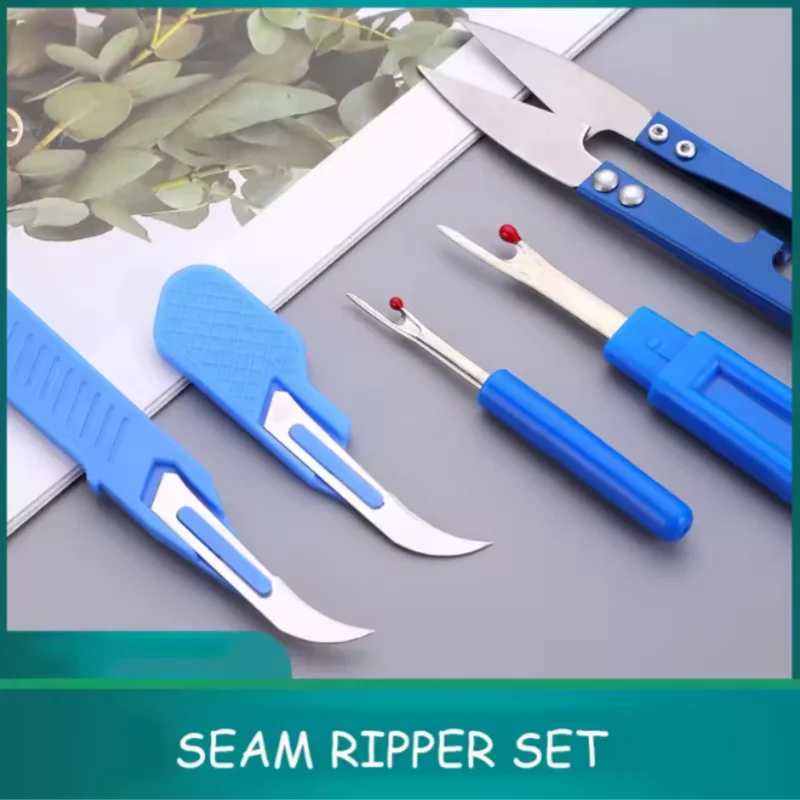5Pcs Blue Sewing Seam Ripper Kit Colorful Sewing Stitch Thread Unpicker Seam Ripper Thread Cutter Scissor for Thread Remove
