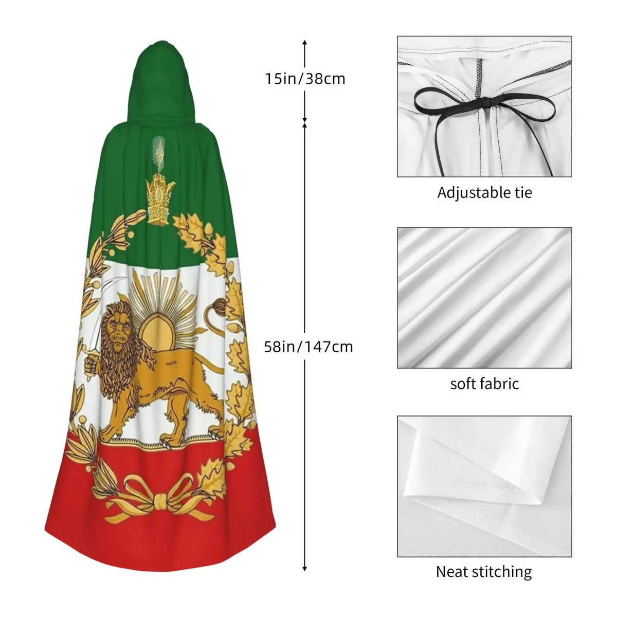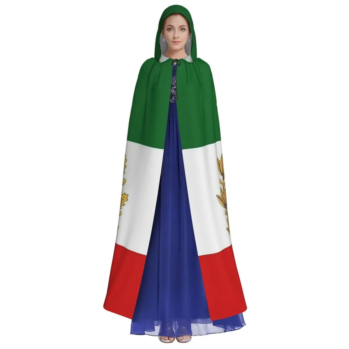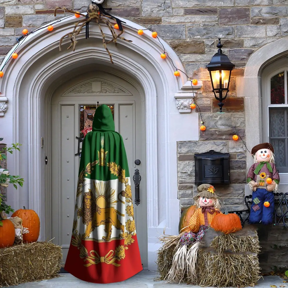 Flag Of Iran Iranian Long Hooded Cloak Witch Medieval Costume Cosplay Cape HalloweenVampire Uni