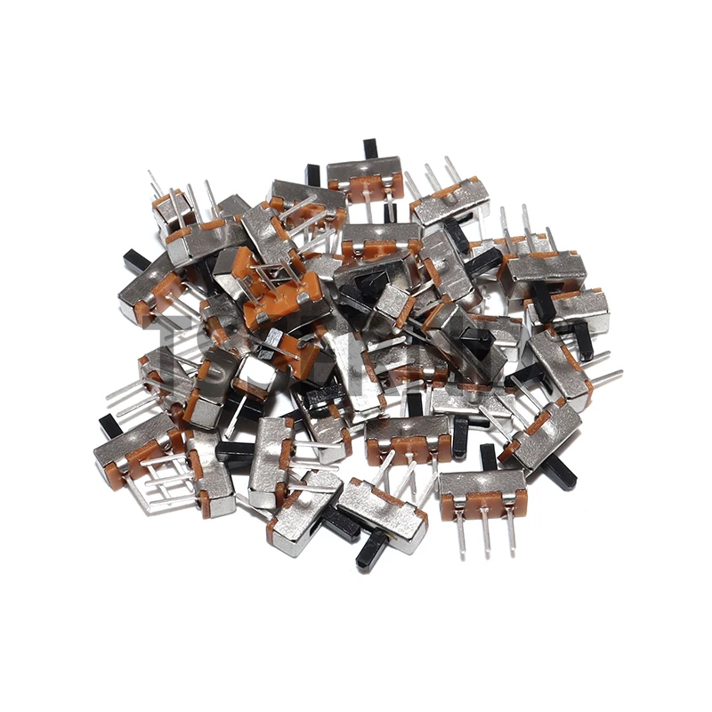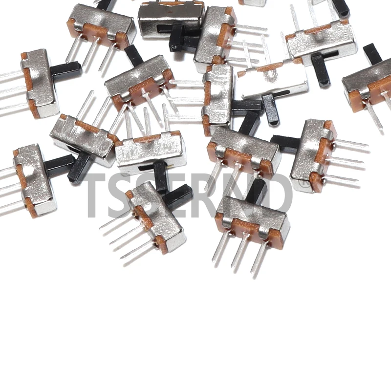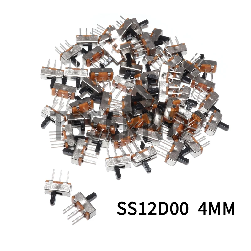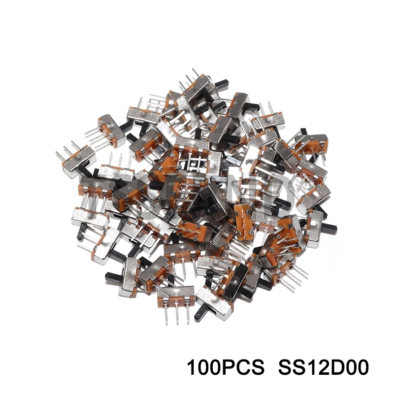 100pcs Mini Vertical Micro Slide Switch 2 Position 3 Pin Terminal 1p2t SPDT On/Off Switches SS-12D00 For PCB Breadboard Electron