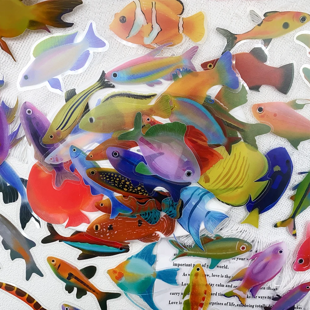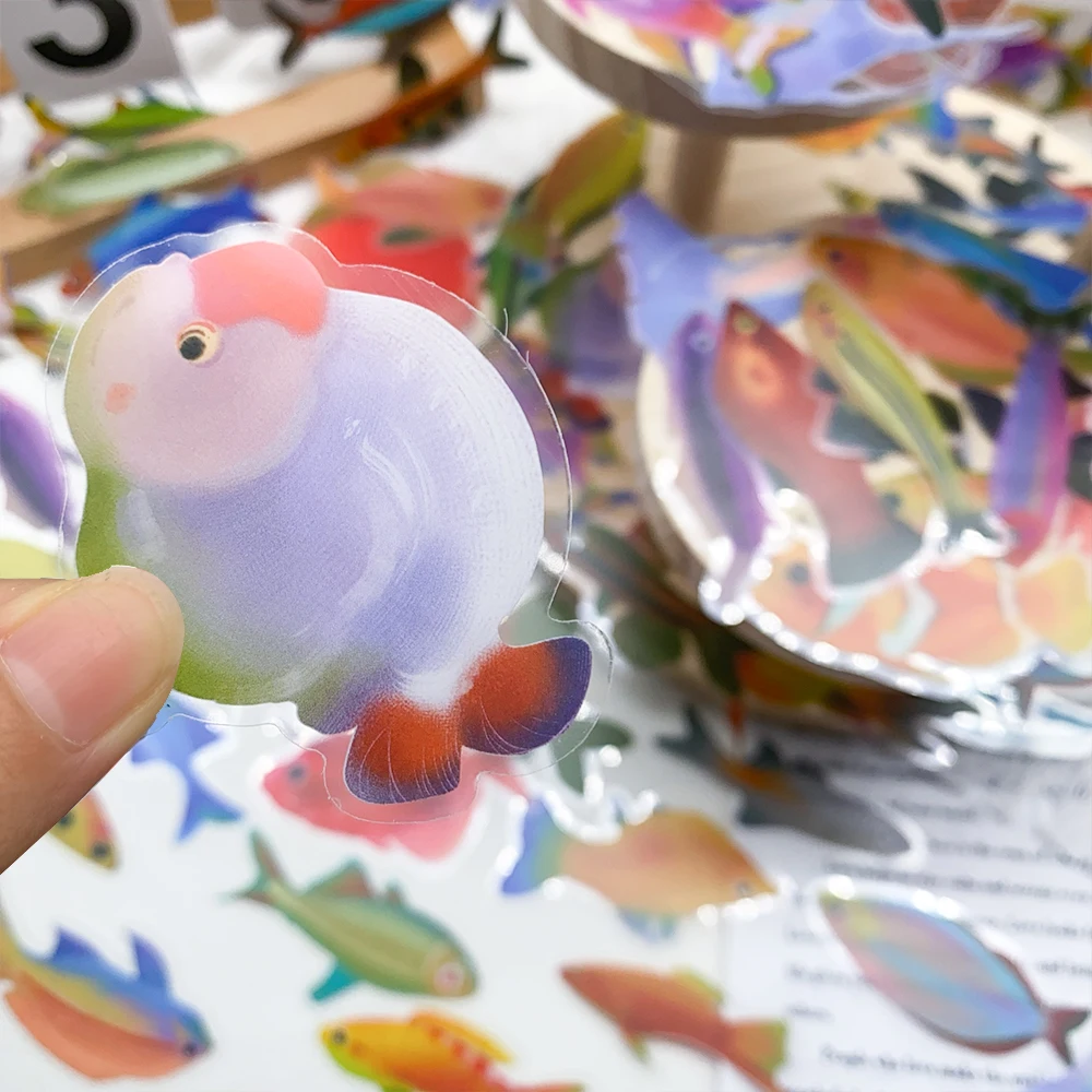 50pcs Cartoon Fish Transparent PET Stickers Decals For Phone Bottle Notebook Guitar Helmet DIY Aesthetic Stickers Creative Gifts