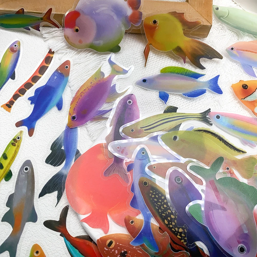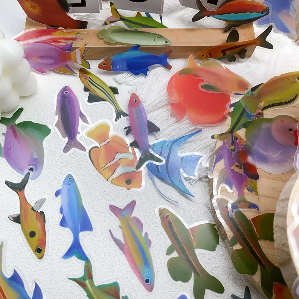 aliexpress , ali , shop , ali shop , online , store , online shop , online store , buy , sell , 50pcs Cartoon Fish Transparent PET Stickers Decals For Phone Bottle Notebook Guitar Helmet DIY Aesthetic Stickers Creative Gifts