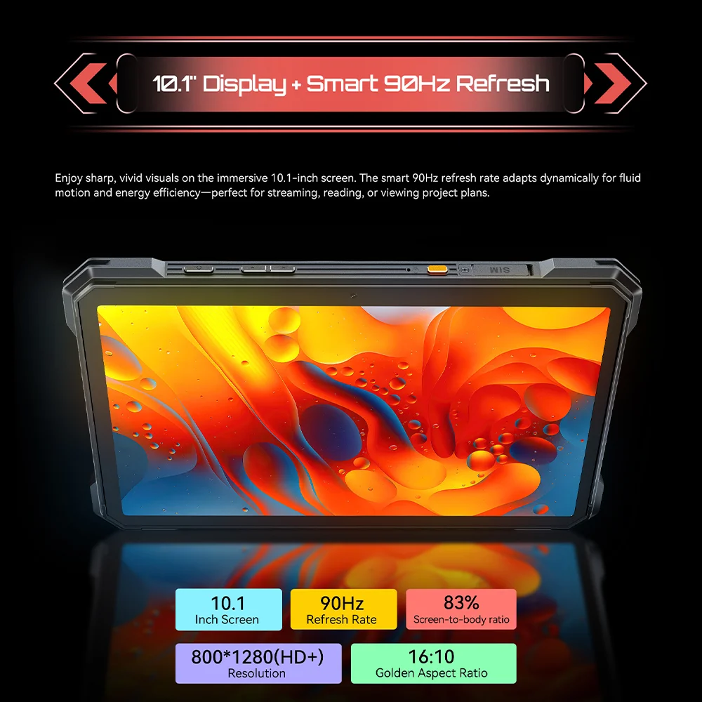 CUBOT Tab Kingkong S 4G Rugged Tablet Unisoc T616 4G 10.1-inch HD+ 90Hz 6GB+256GB 15300mAh Battery 33W Charging 48MP Android 15