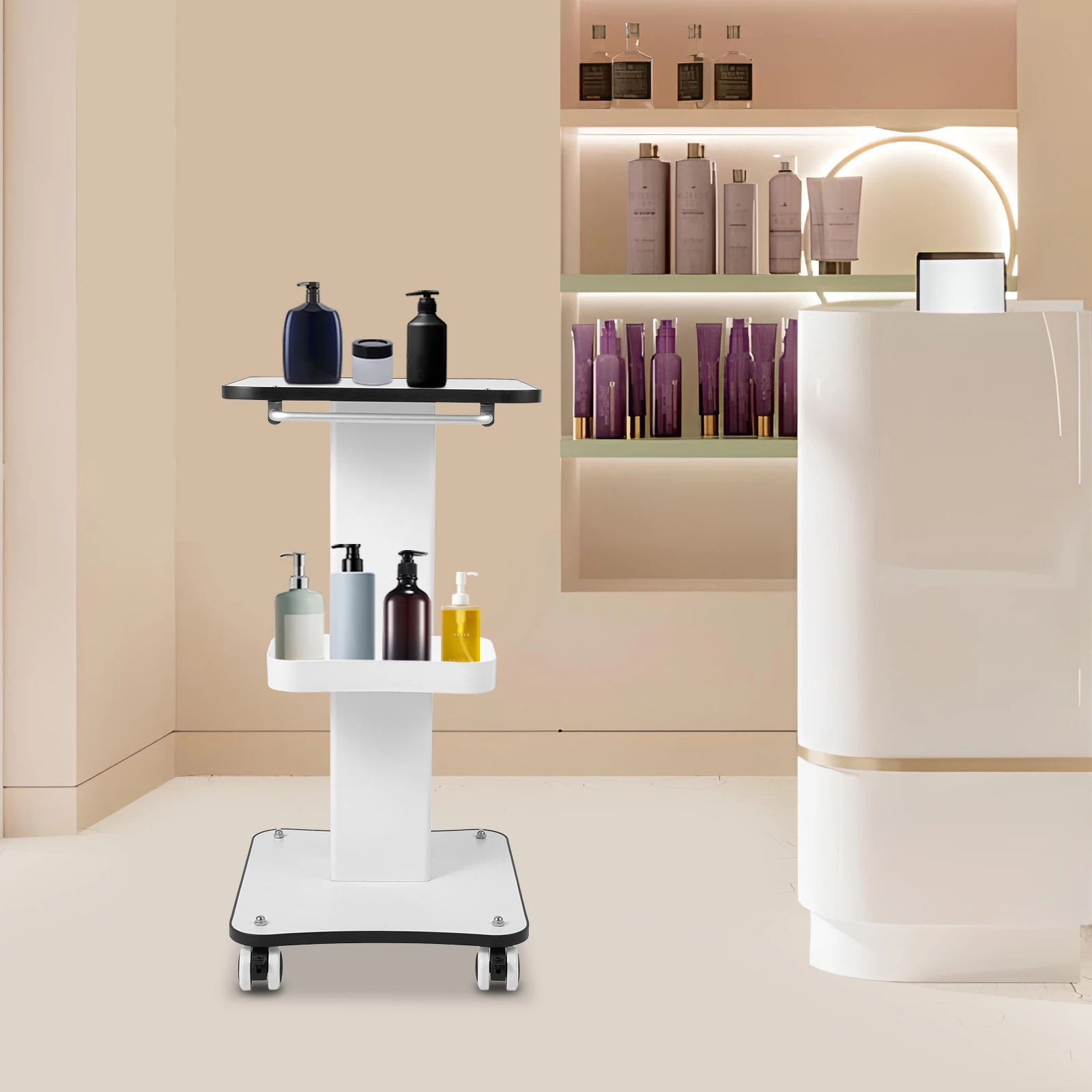 Beauty Salon Trolley Cart White Rolling Cart 4 Wheels Salon Spa Stand Roller Trolley with Handle for Medical/Beauty Equipment