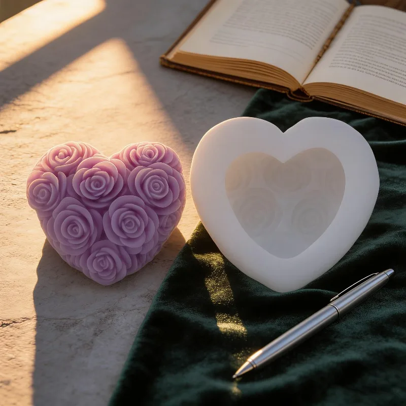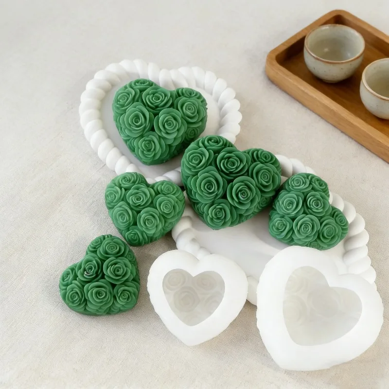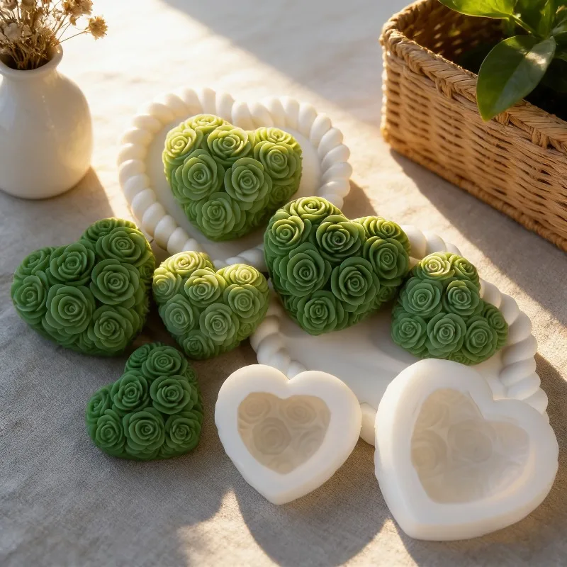 DIY Love Rose Flowers Valentine's Day Candle Mold Handmade Soap Candle Making Material Gypsum Clay Cement Crafts Silicone Mold