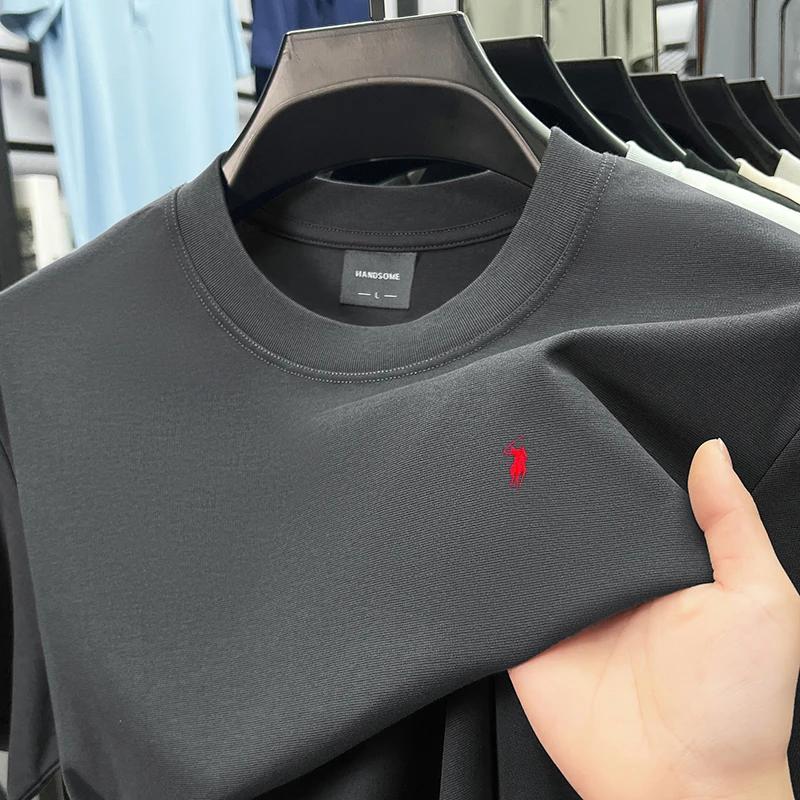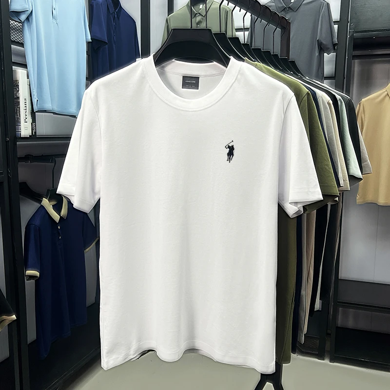 Men Summer Design High-end Soft 100% Cotton Breathable Short-sleeved T-shirt Stylish Casual Round-neck Simple Versatile Suitable