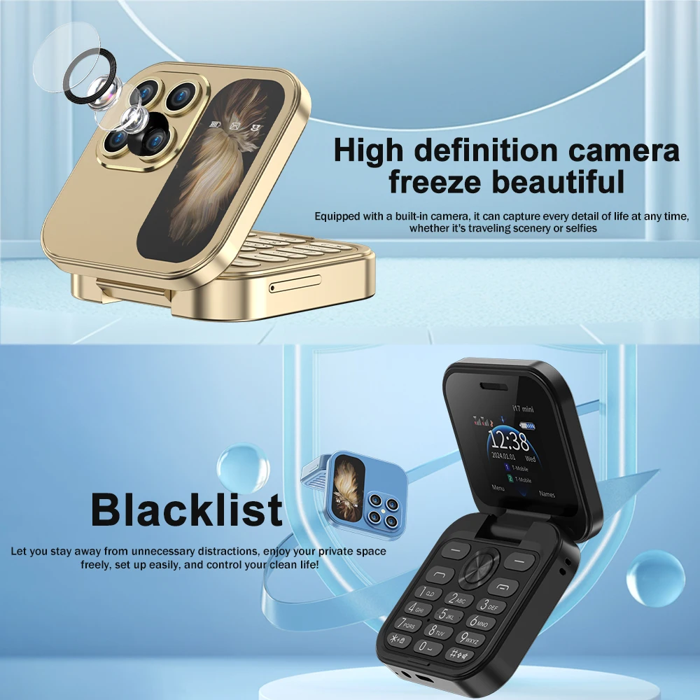 SERVO Mini Foldable Mobile Phone 2G Cellular 1.77'' Display Speed Dial FM Radio Flashlight Magic Voice Dual SIM Flip Cellphones