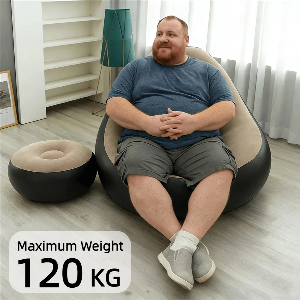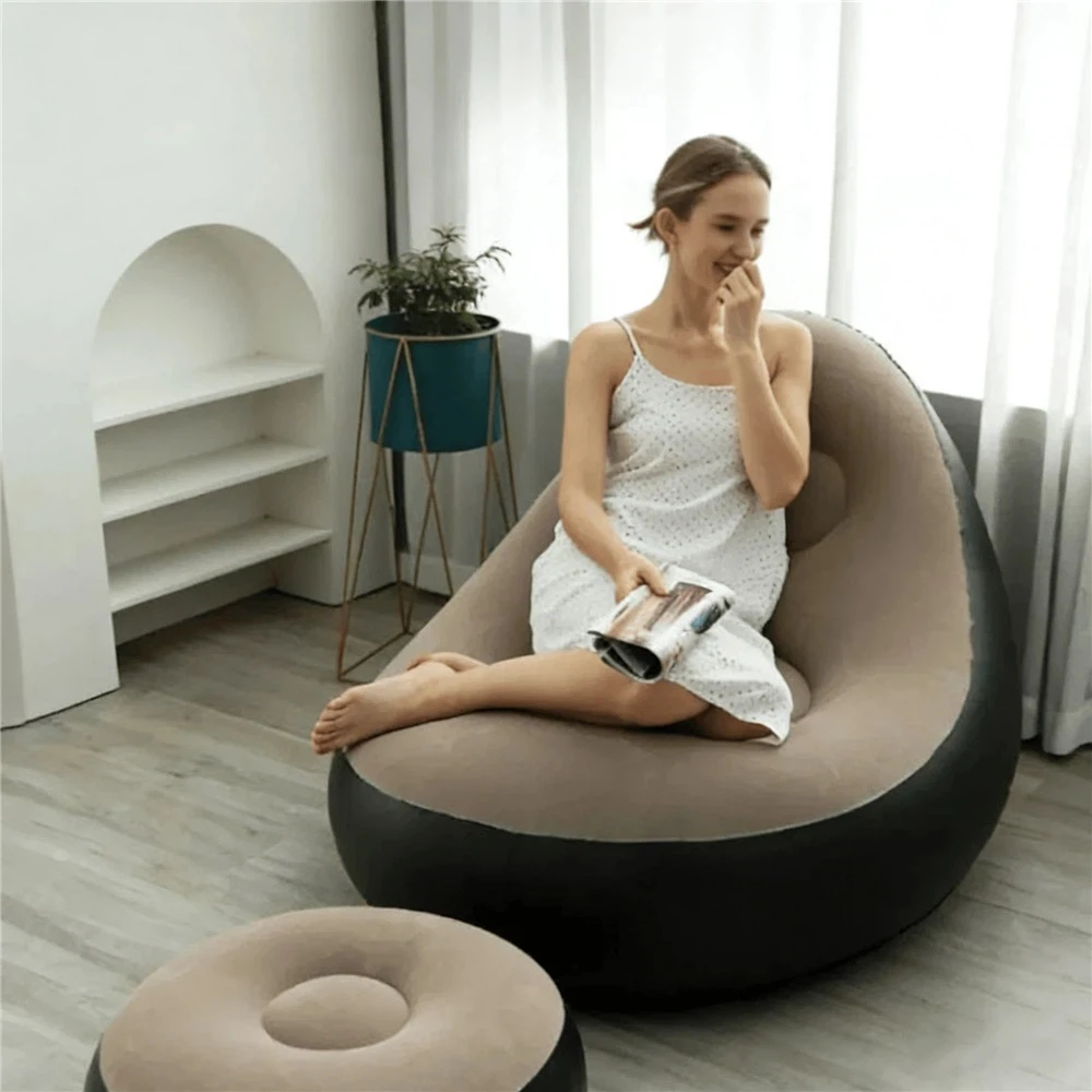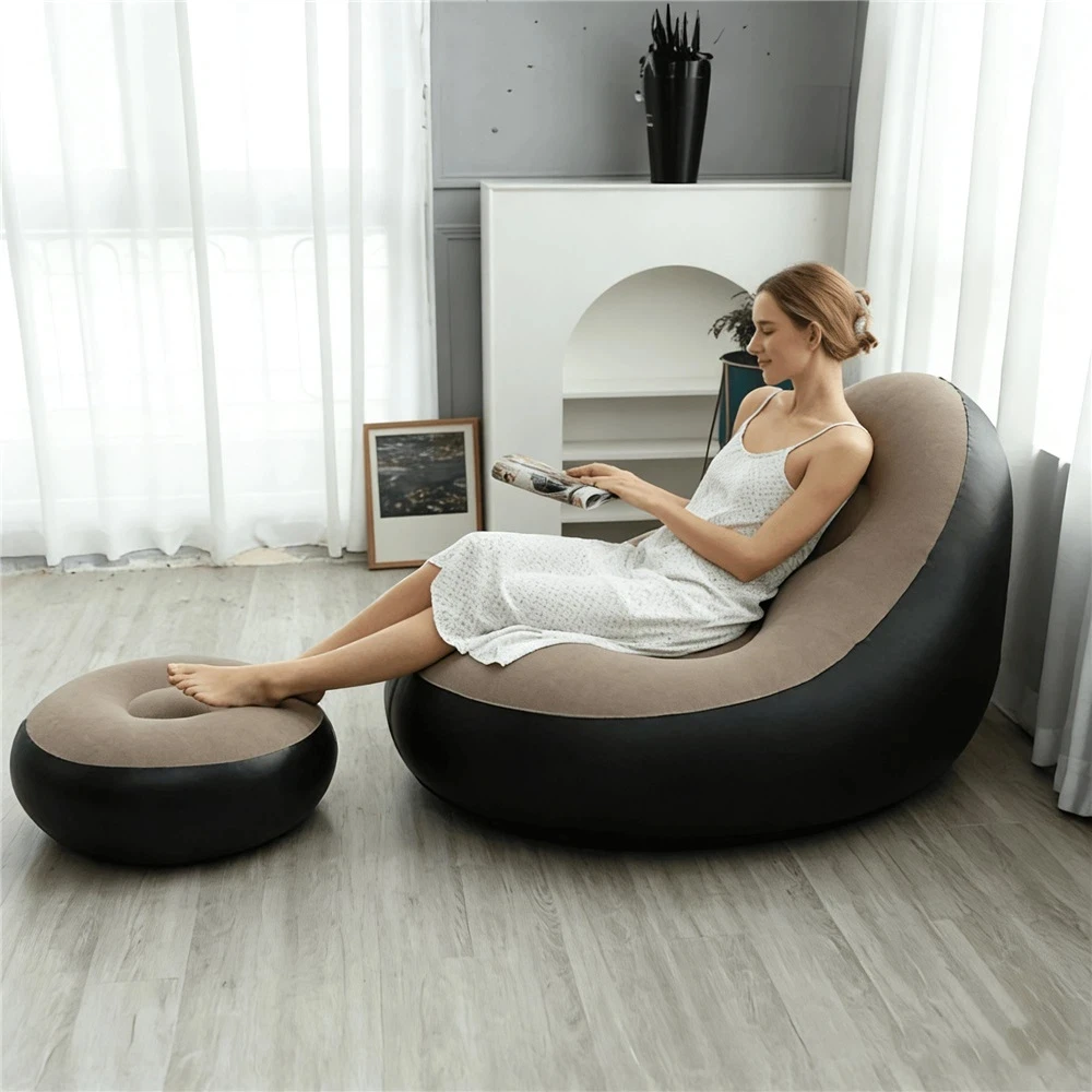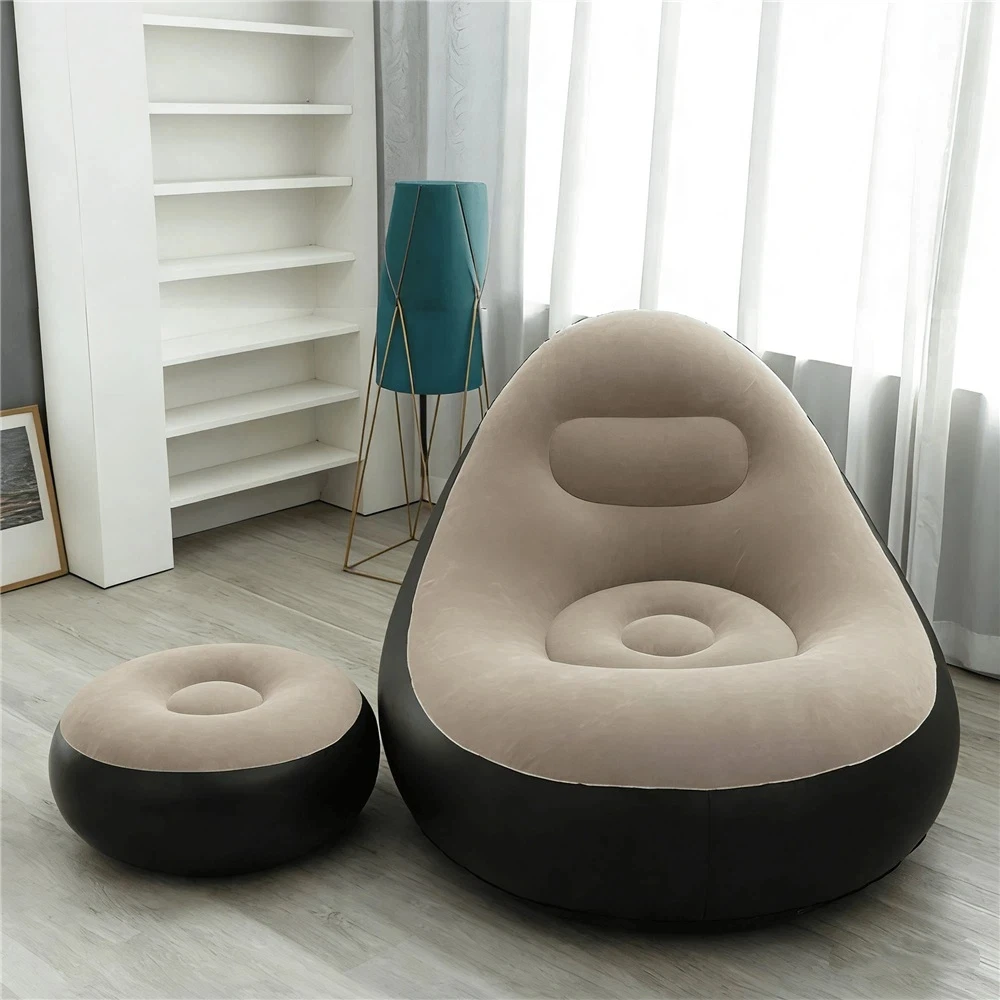 Portable Inflatable Lazy Sofa with Footstool, Hot-Selling Outdoor Camping Lounger, Waterproof Wear-Resistant Air Mattress for Na