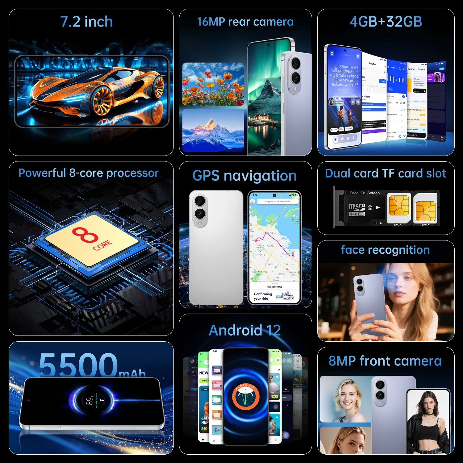[World First] IVMI S26 Ultra Smartphone 4GB+32GB ROM 7.2-inch HD+Screen Android12.0 8+16MP 5500mAh Mobile Phones