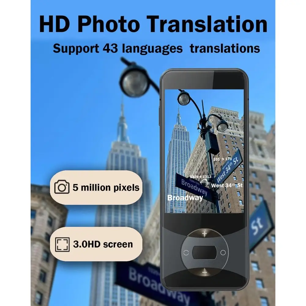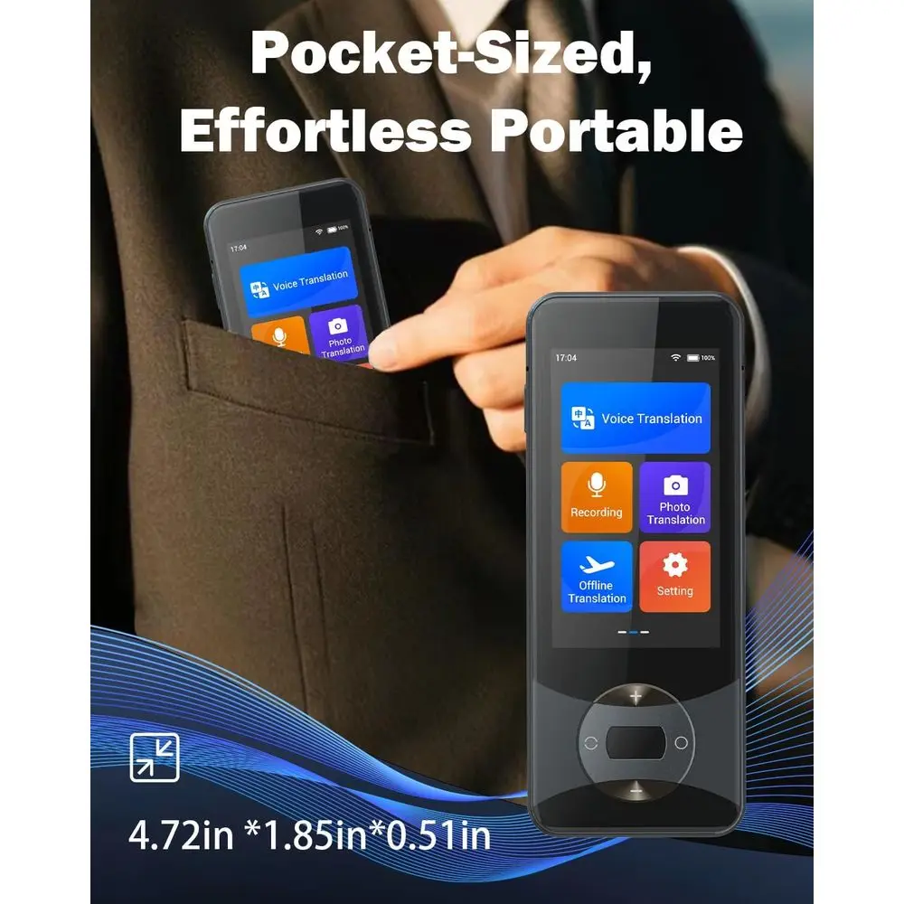 Two-Way Real-Time Translator, 144 Languages, Voice/Online/Photo, Ideal for Travel & Business