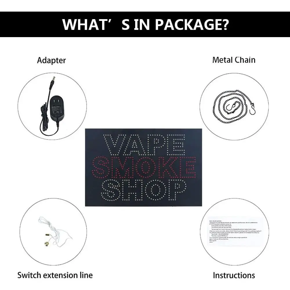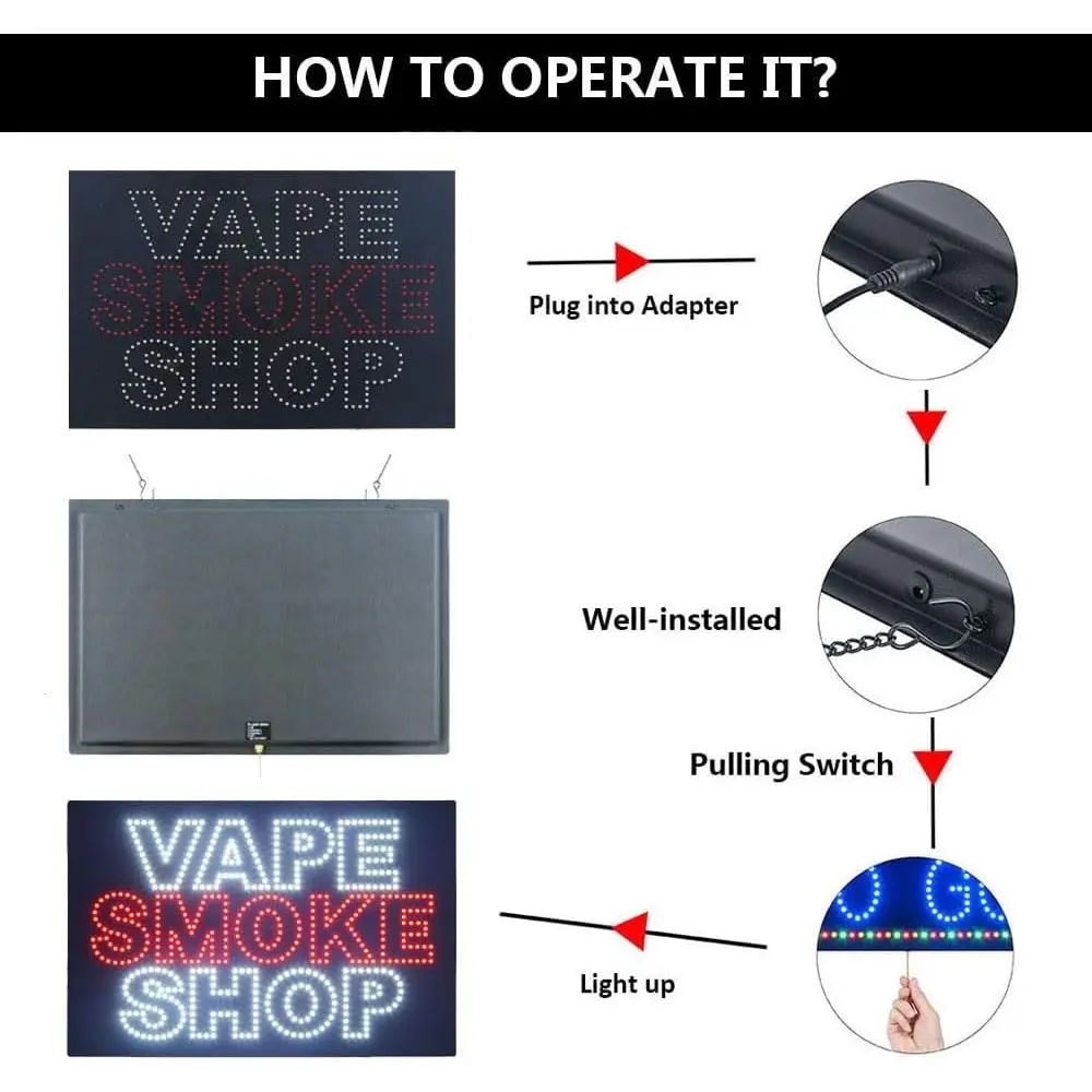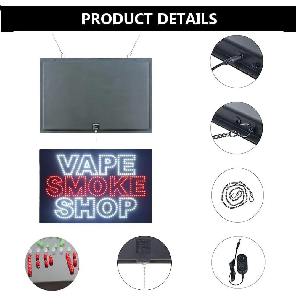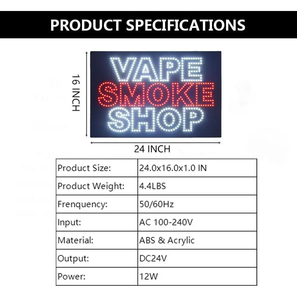 Illuminated LED Open Sign for Vape & Accessories Shop, 24x16
