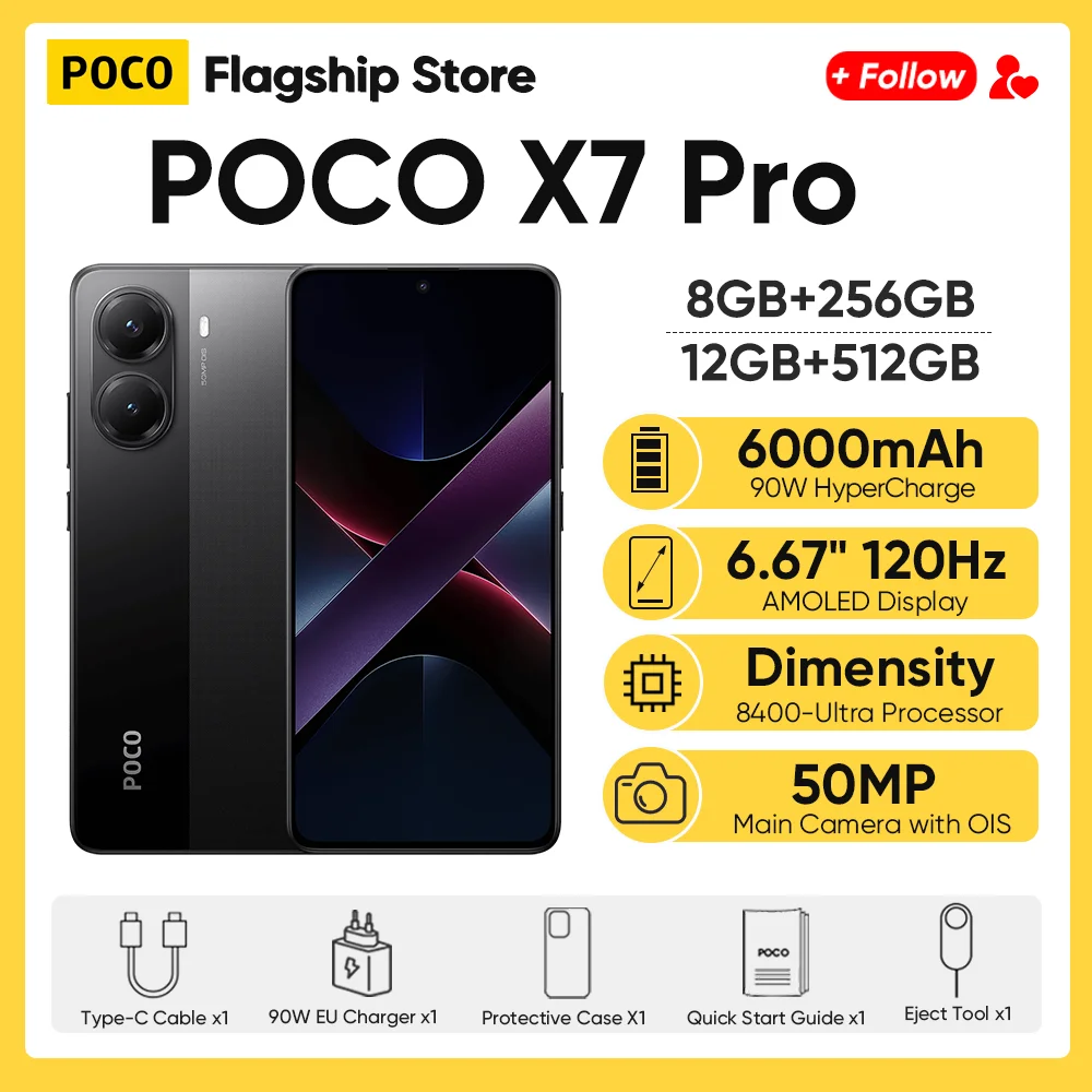 Original POCO X7 Pro Global Version Smartphone Dimensity 8400 Ultra 6.67'' 120Hz AMOLED Display 50MP 6000mAh 90W HyperCharge