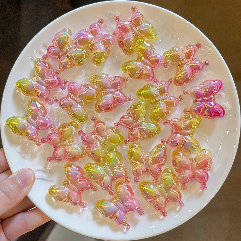 DIY accessories color gradient phoenix tail butterfly cartoon hair accessories butterfly UV plated acrylic material loose beads