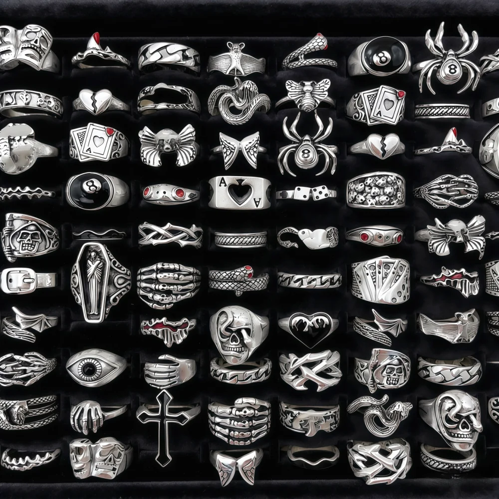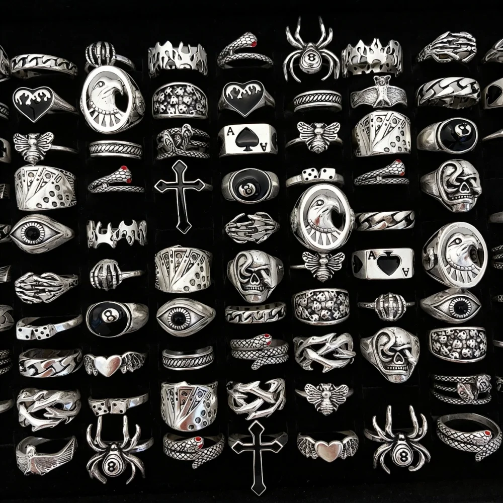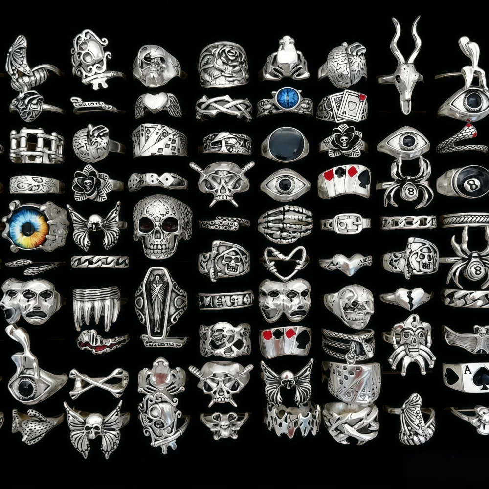 10/20/30/50/100Pieces Vintage Punk Skull Eye Rings Set For Women Men Mix Style Hip Hop Finger Ring Jewelry Party Gift