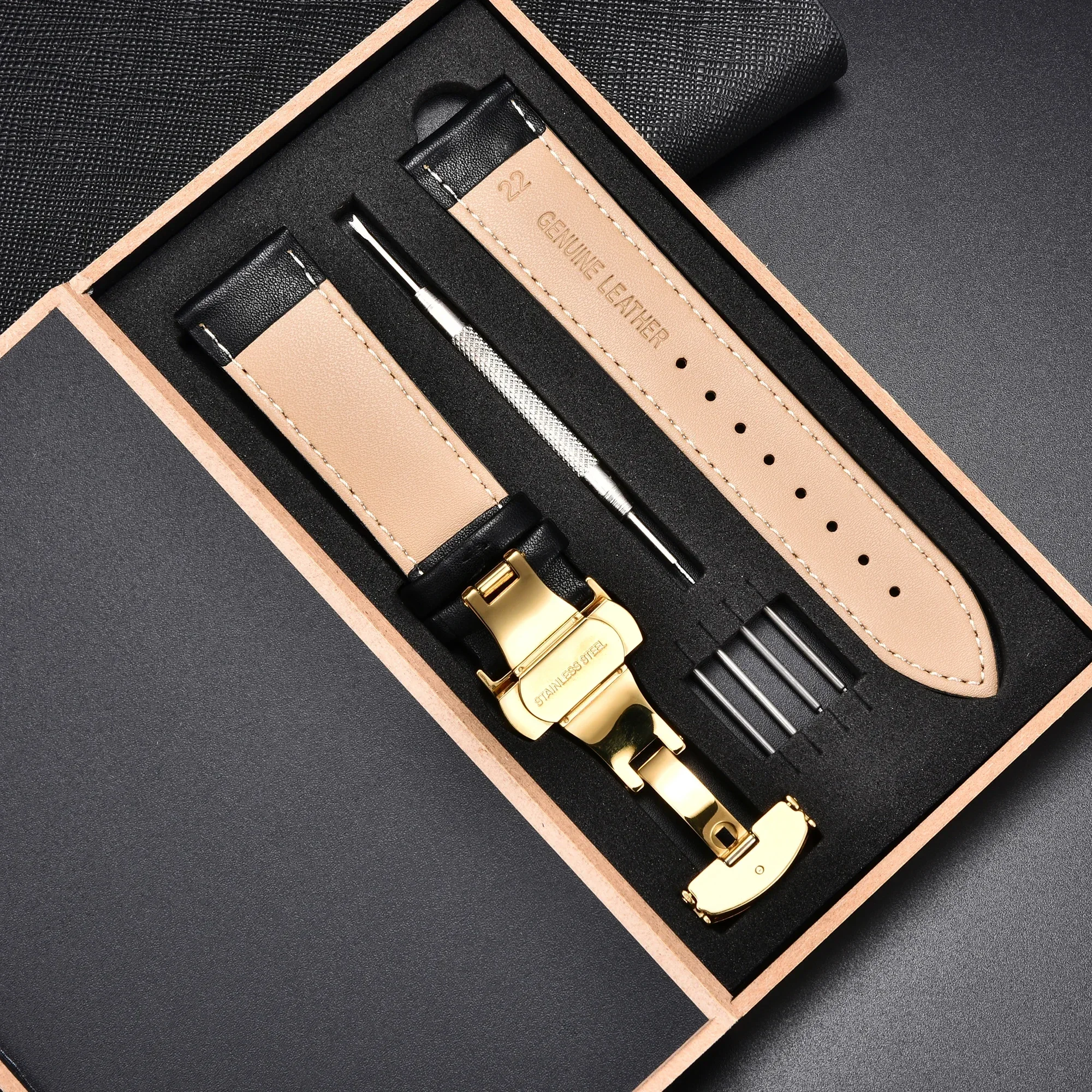 Genuine Leather Watchband 18mm 20 22 24mm Watch Strap Automatic Butterfly Buckle Men's and Women's Business with Box Wrist Belt