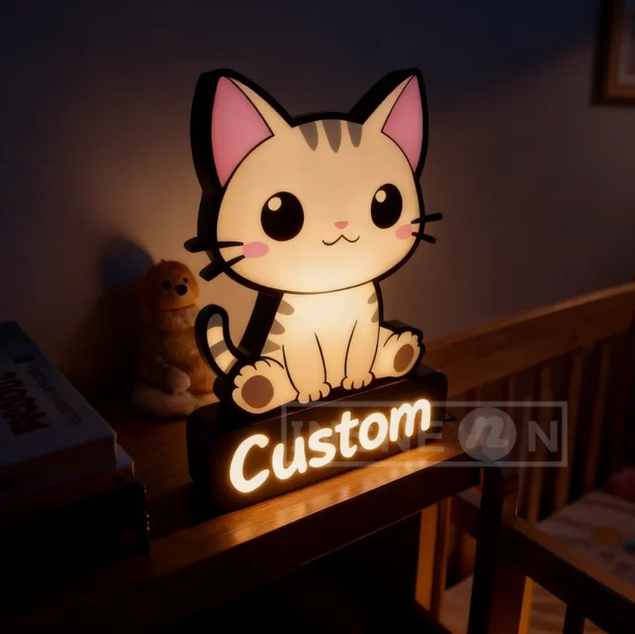 aliexpress , ali , shop , ali shop , online , store , online shop , online store , buy , sell , Personalized Cat LED Lamp Custom Name Night Light Kid Room Decor 3D Lighting Indoor Decoration Signage Child Gift Table Lightbox