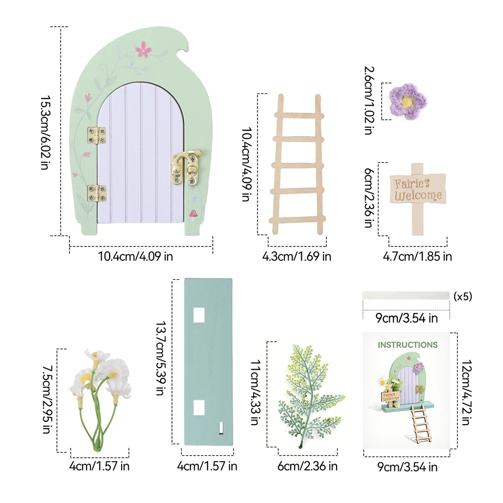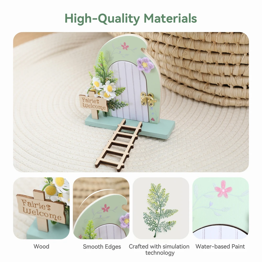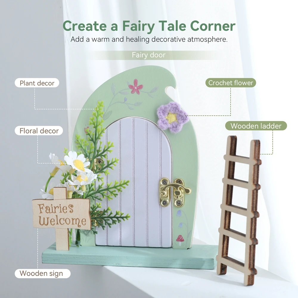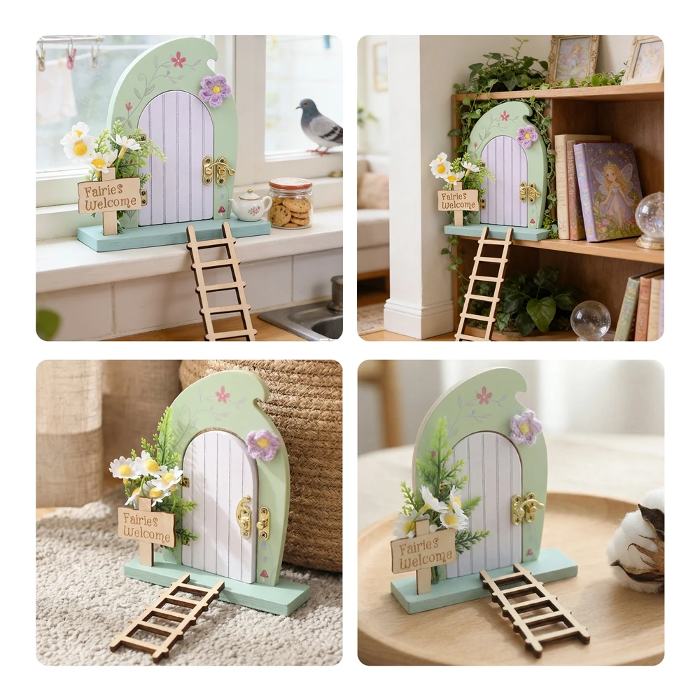 Dollhouse Mini Home Decorations Wood Fairy Elf Door Enchanted Miniature Fairy Door With Ladder Desk and Balcony Decorative Toys