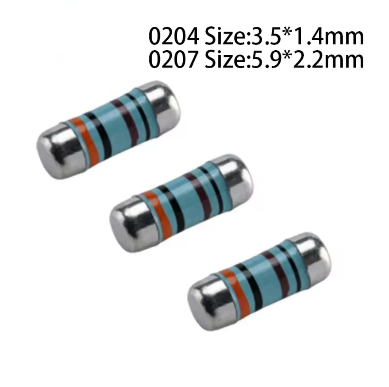 100PCS/lot 1% 0204 SMD MELF Resistors Color Ring Resistors 1% 0R 1R 10R 100R 1K 10K 47K 100K 1M 10M Metal Film Cylindrical High