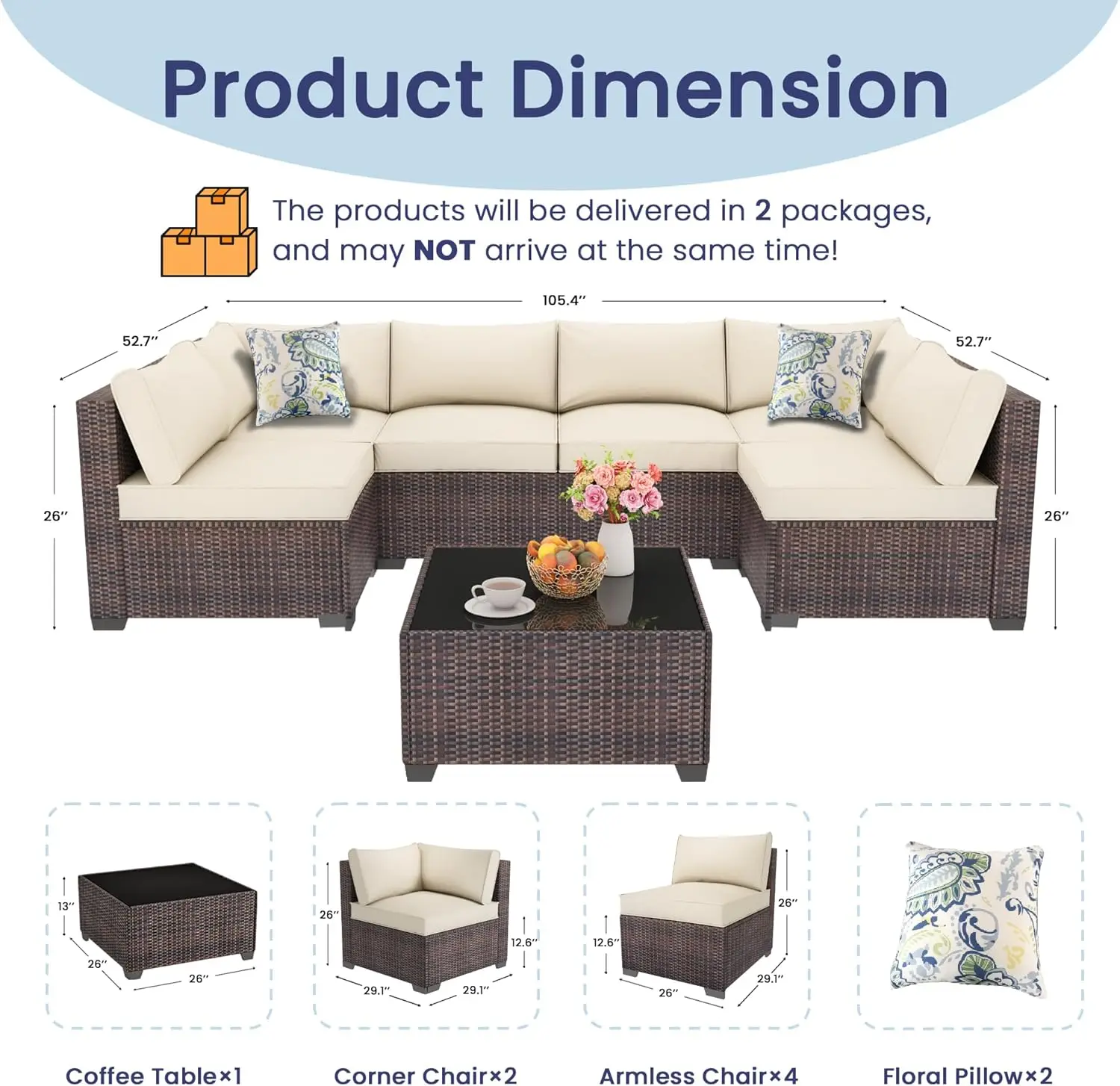 aliexpress , ali , shop , ali shop , online , store , online shop , online store , buy , sell , 7 Piece Outdoor Patio Furniture Set, Outdoor Sectional Furniture, Rattan & Wicker Modern Modular Conversation Set Sectional Sofa