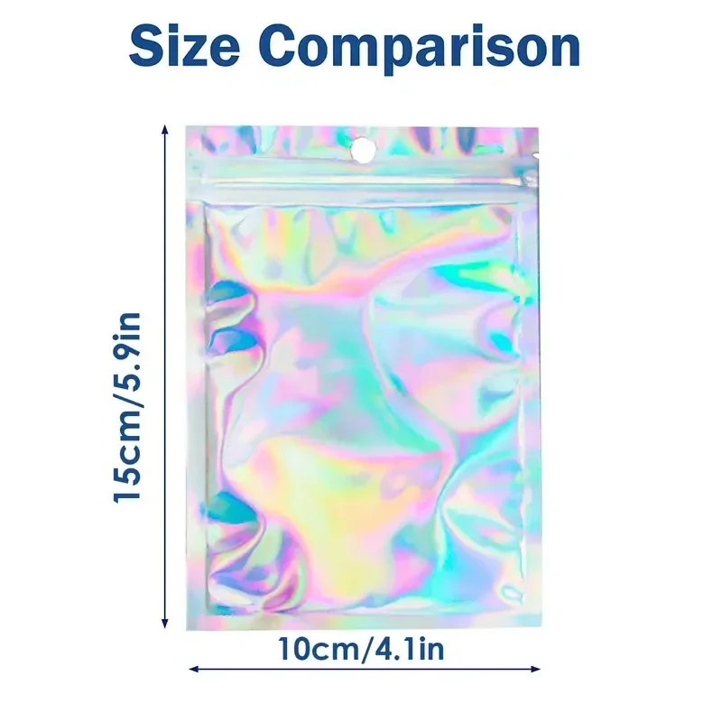 Smell Proof Bags Mylar Holographic Resealable Bags Foil Pouch Ziplock Bags for Party Favor Storage Jewelry Packaging Sizes 2032