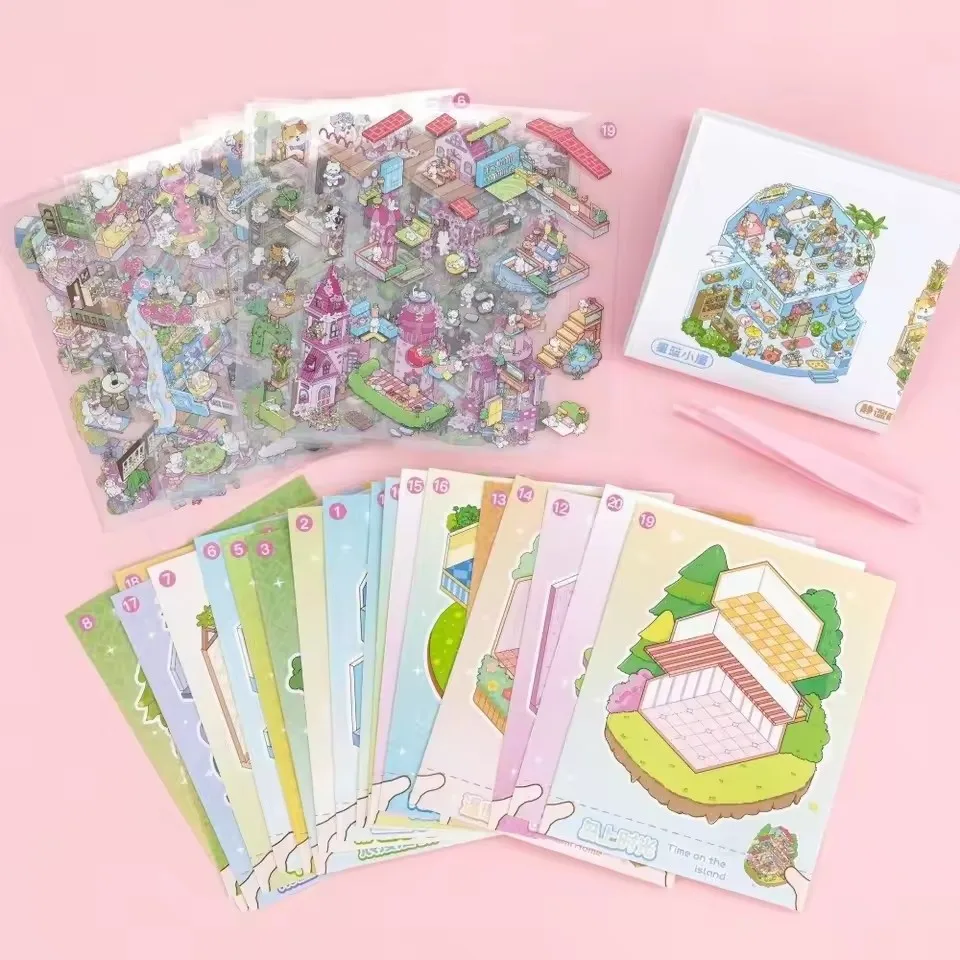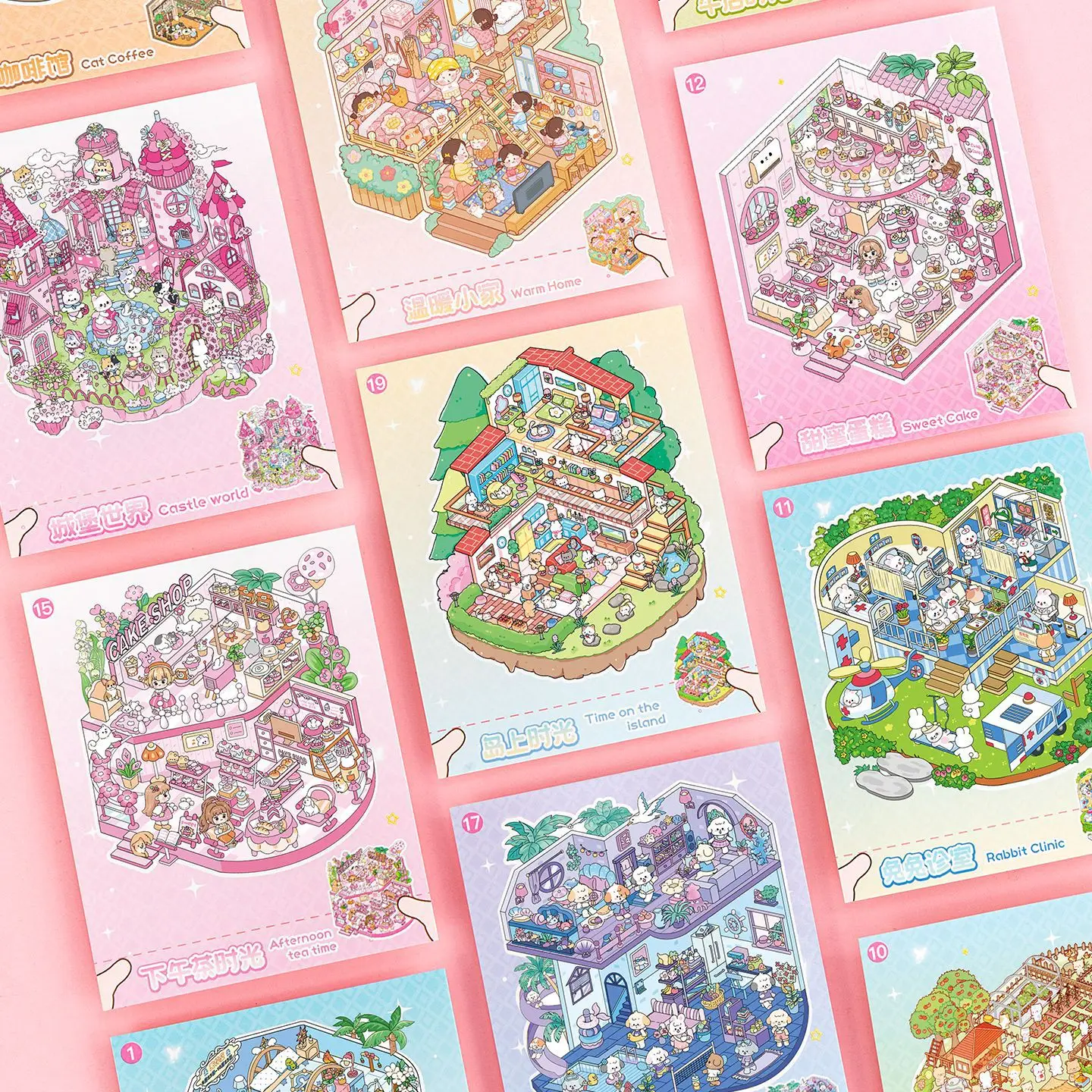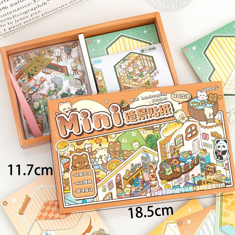 Creative cartoon 3D landscape sticker book PET mini cabin scene sticker DIY sticker cabin scene sticker gift box suitable for bi