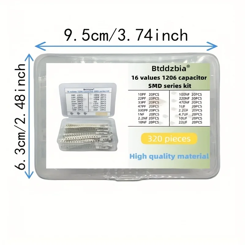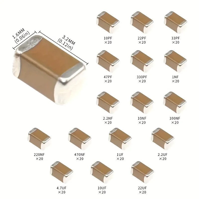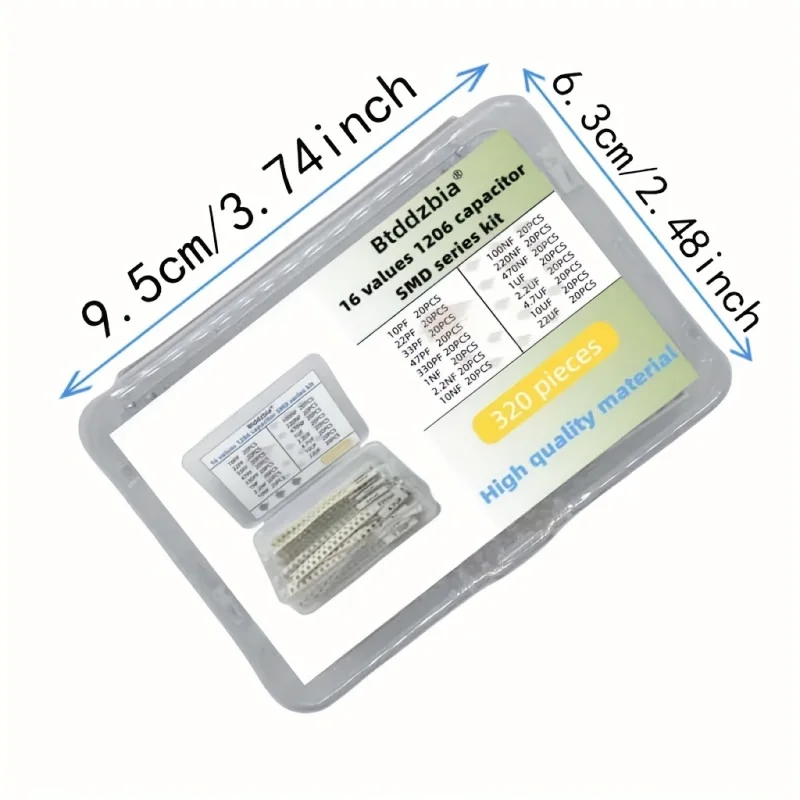 (Industrial SMD Capacitor Components)320pcs 1206 SMD Capacitor Kit - High Quality Assorted Capacitors Set for Electronic Compone