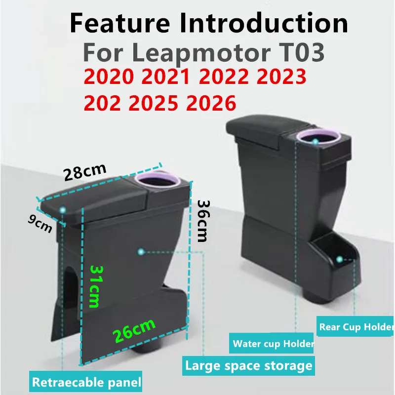 For Leapmotor T03 Armrest Box For Leapmotor T03 Car Armrest 2020-2026 Central Storage Water Cup Holder Car Accessories Parts