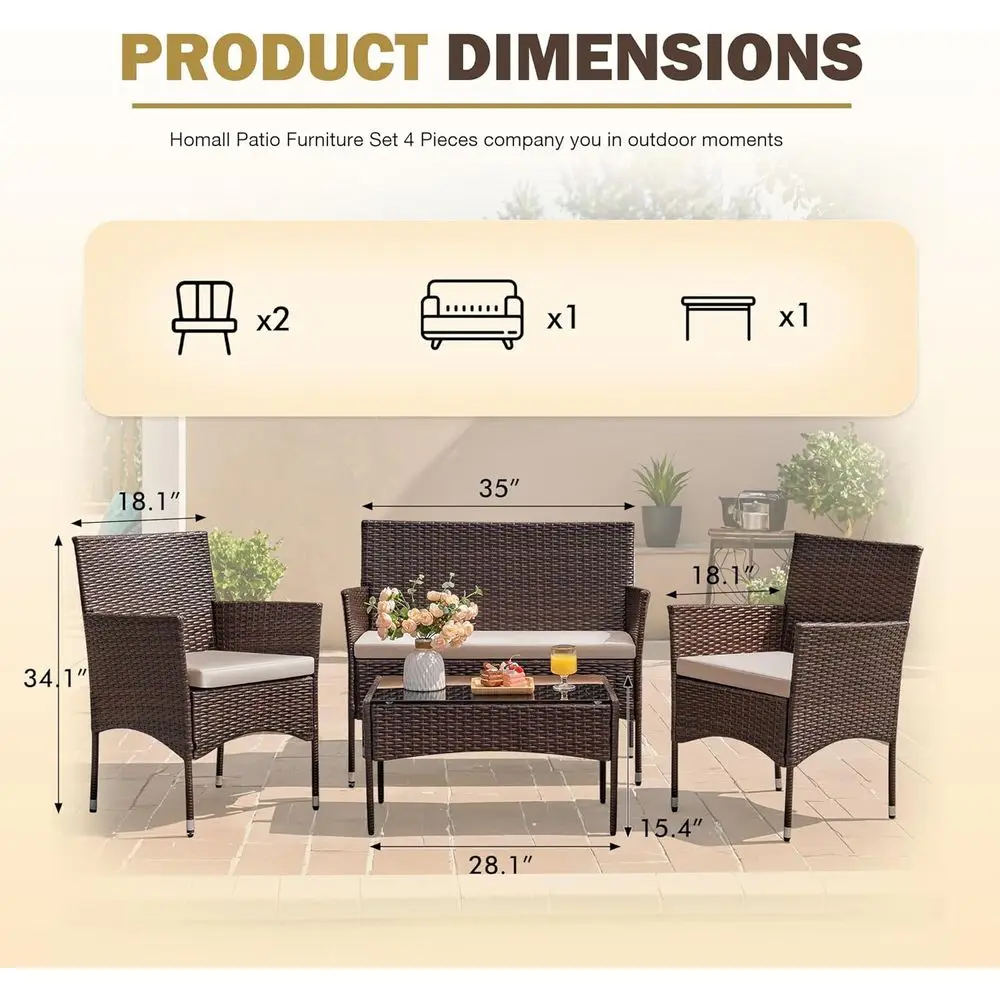 4 Pieces Outdoor Patio Furniture Sets Rattan Chair Wicker Set,Backyard Porch Garden Poolside Balcony Furniture (Brown and Beige)